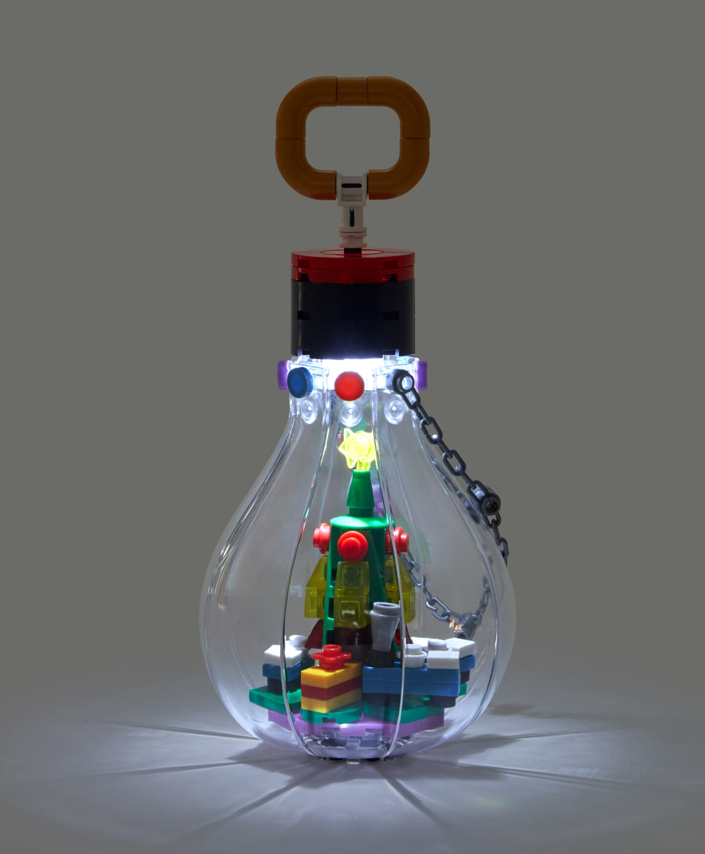 Lemputė su eglute – tai dekoracija, kurioje susijungia šviesa ir Kalėdų simbolis. Viduje yra miniatiūrinė eglutė, kuri įžiebta sukuria šiltą ir jaukią atmosferą. Tai nedidelis akcentas, kuris puikiai papildo kalėdines namų dekoracijas ir suteikia interjerui pasakišką atmosferą.