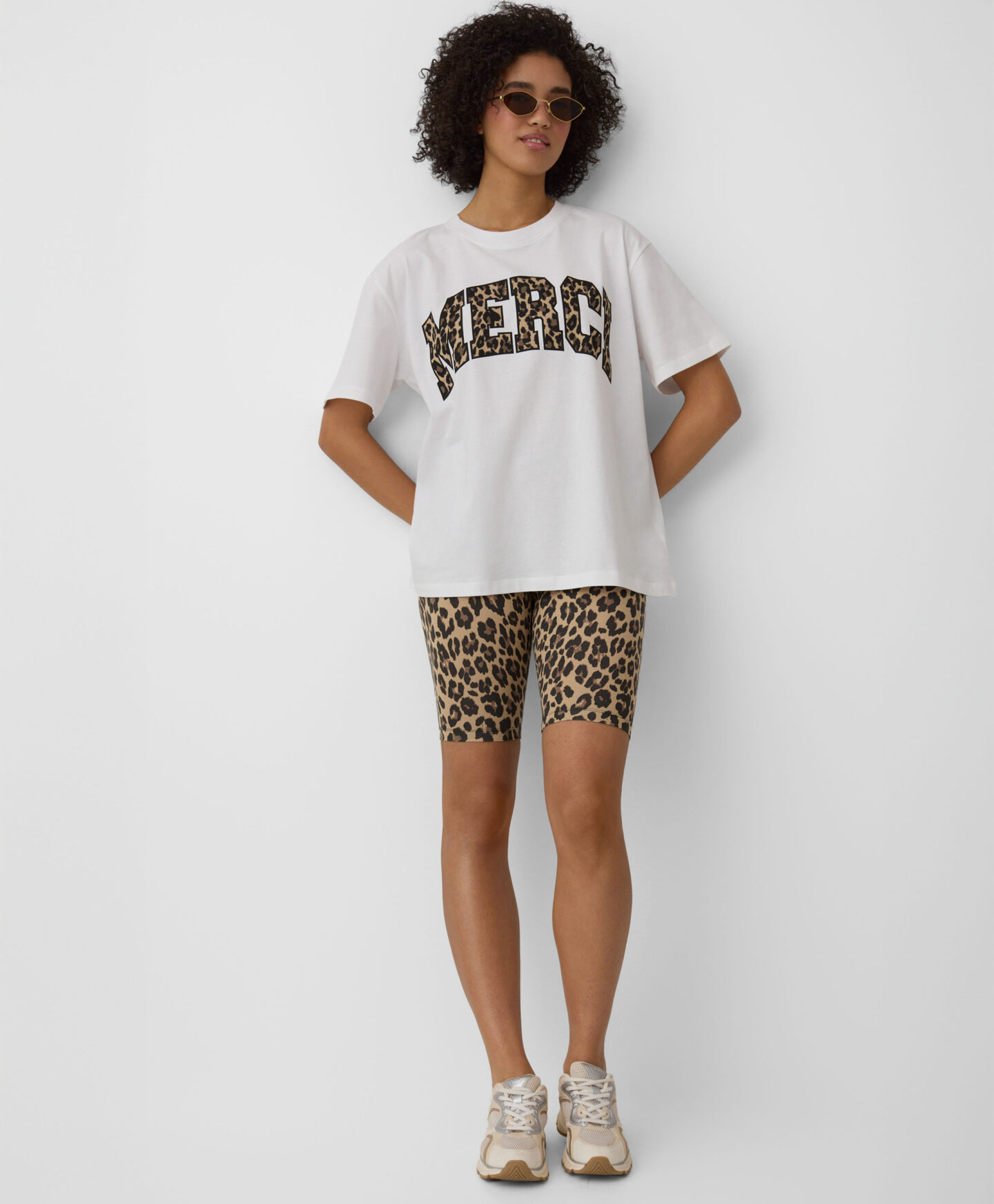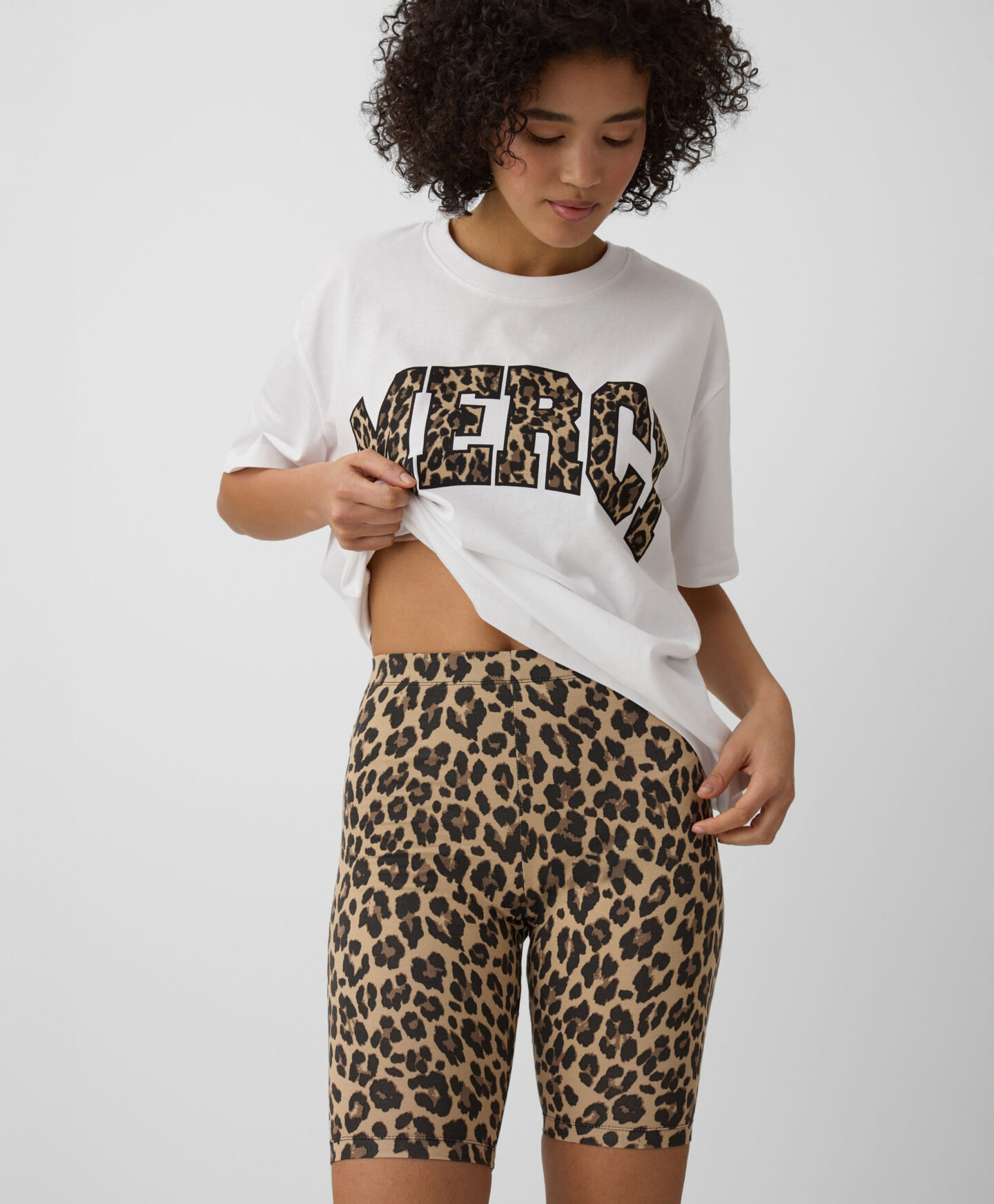 Šie leopardo rašto dviratininko tipo šortai, puikiai tinka mėgstantiems eksperimentuoti su stiliumi ir išreikšti savo asmenybę per madą. Sudėtyje yra daug medvilnės, nedidelis elastano kiekis užtikrina patogų prigludimą. Prigludęs siluetas pabrėžia figūrą, o aukštas liemuo vizualiai pailgina kojas, suteikdamas maksimalų komfortą ir judėjimo laisvę. Derinkite juos su oversized tipo marškinėliais ar džemperiu, ir sukurkite madingą sportišką įvaizdį.