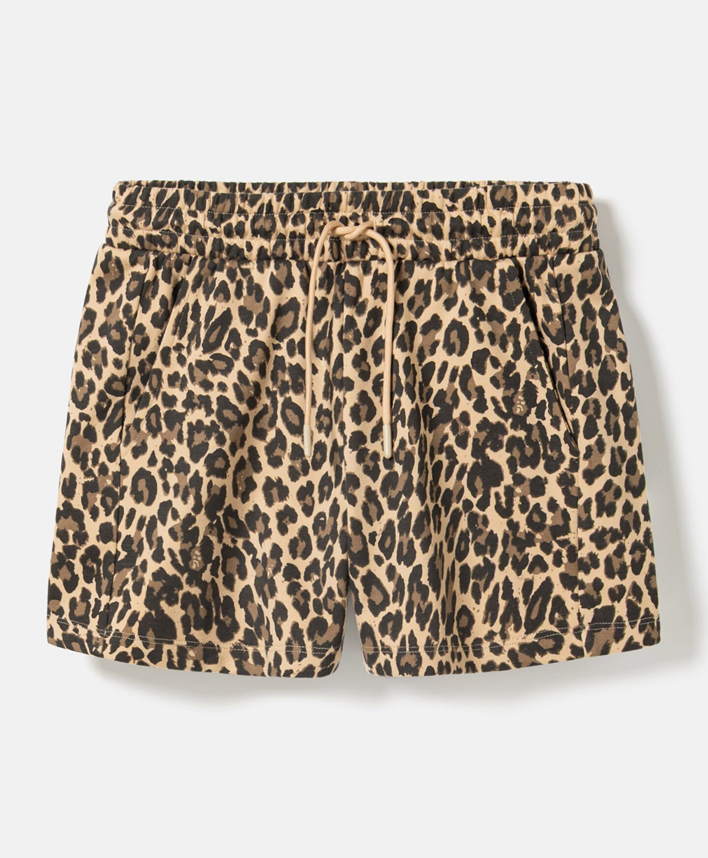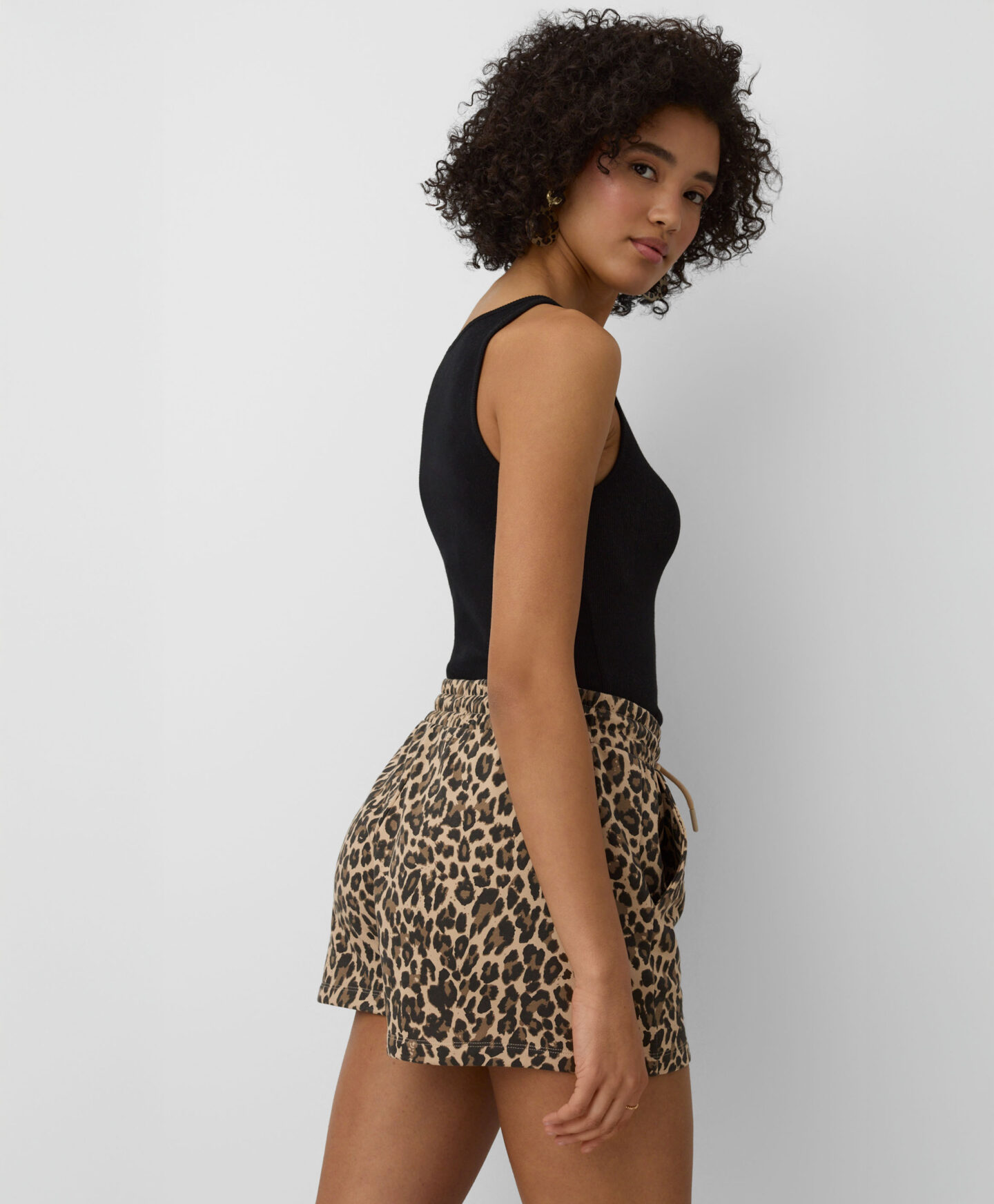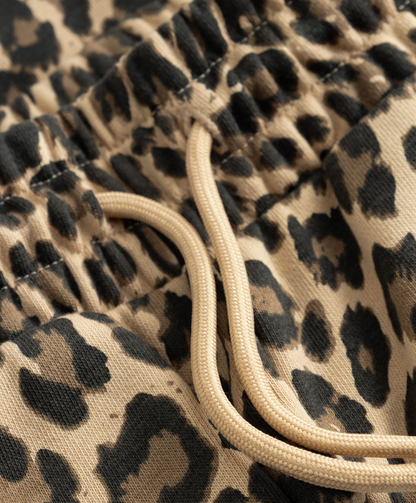 Šie leopardo rašto šortai su kišenėmis puikiai tinka gyvūnų raštų mėgėjams. Jie lengvi ir malonūs odai. Puikiai derės su vienspalviais viršutiniais drabužiais – nuo marškinėlių su petnešėlėmis iki elegantiškų marškinių. Elastingas juosmuo užtikrina komfortą.
