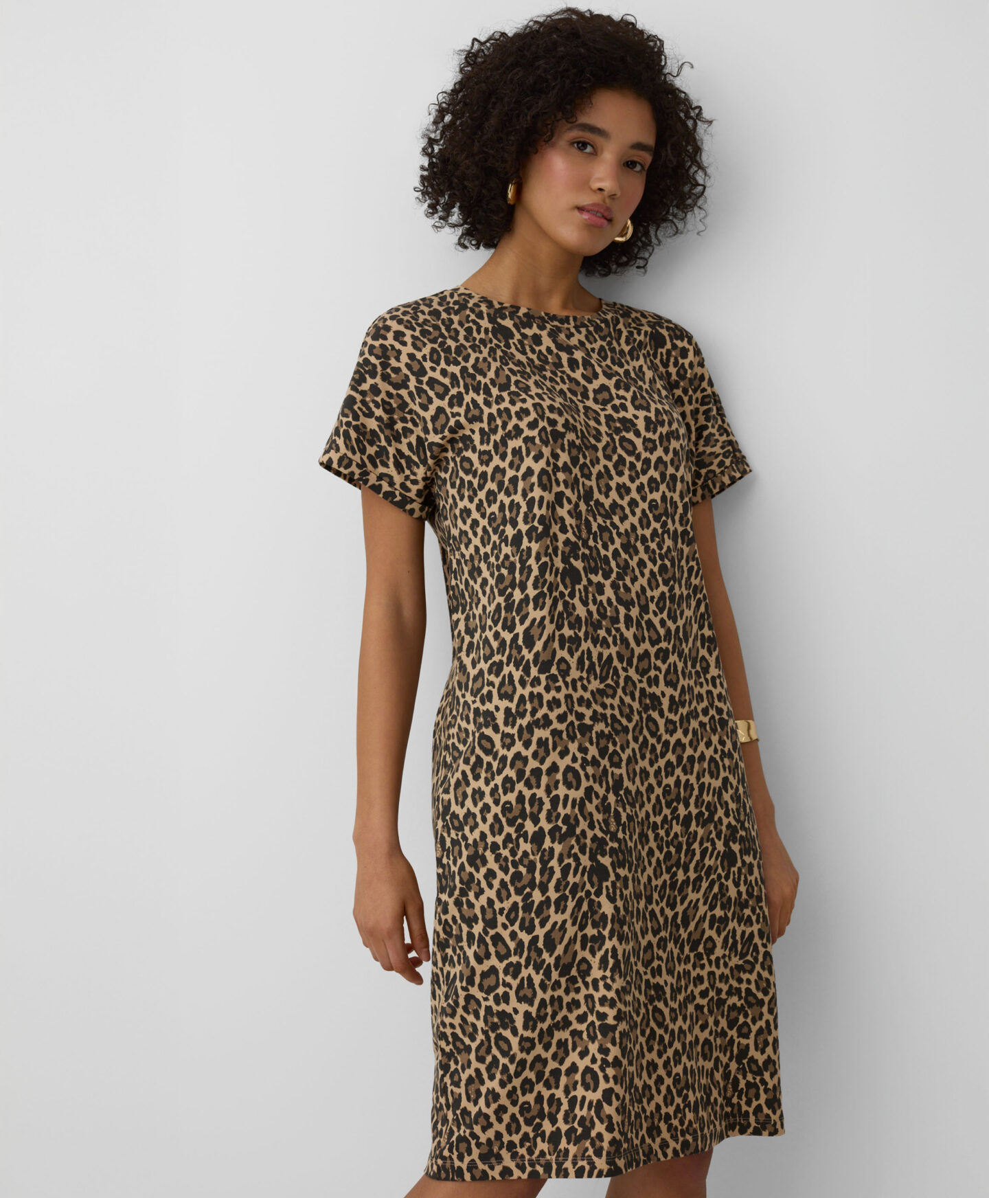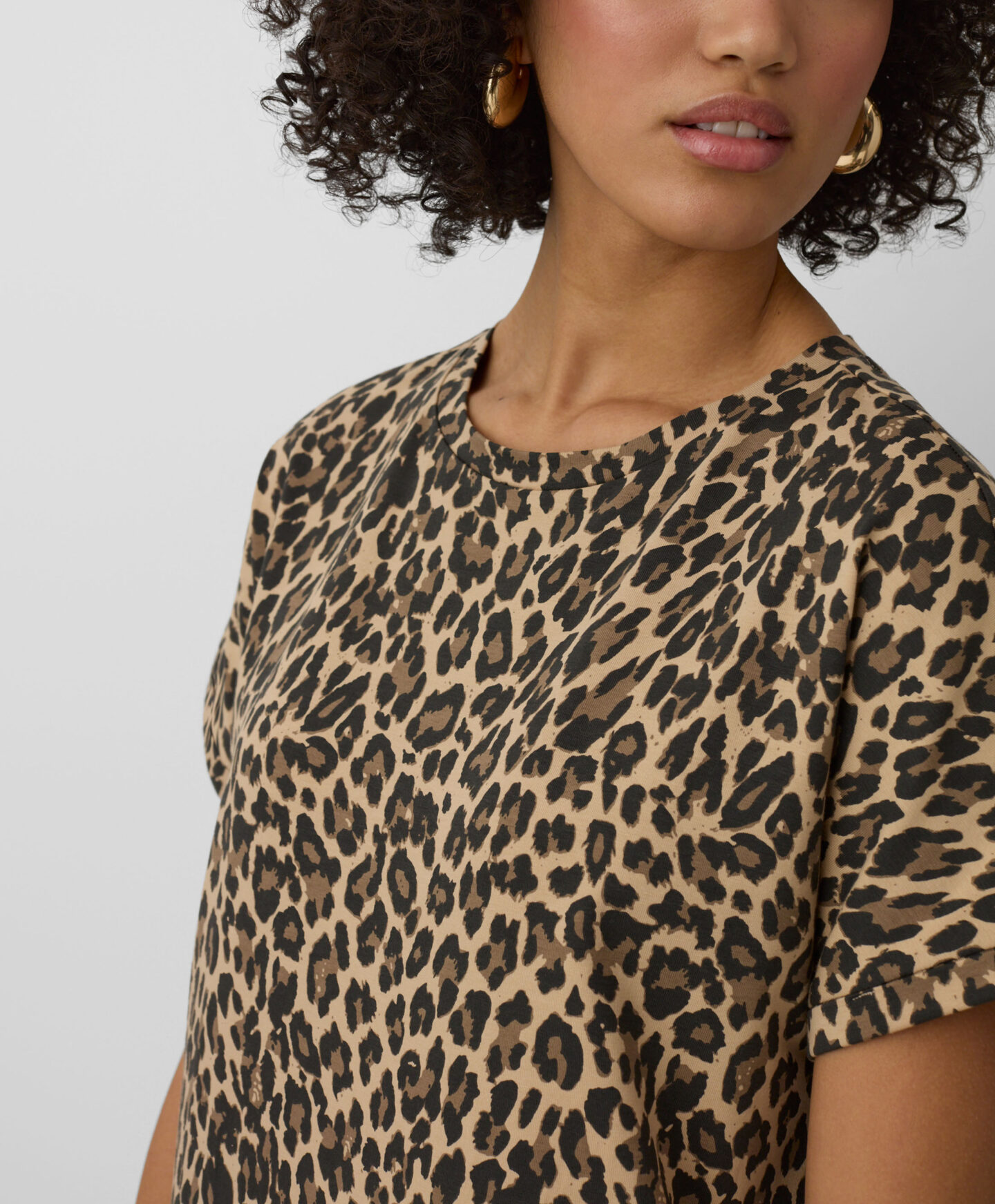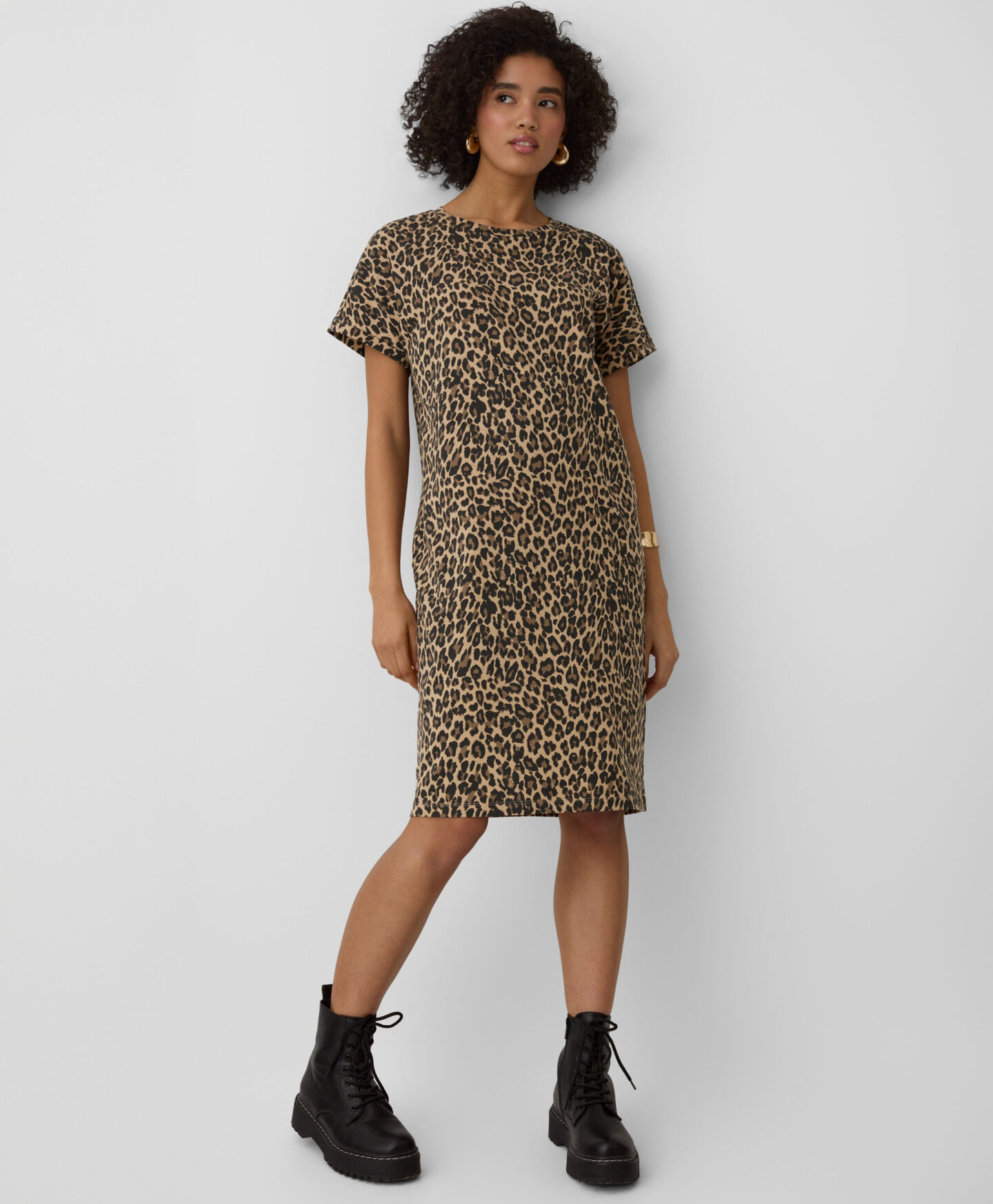Leopardo rašto suknelė leis išsiskirti iš minios. Gyvūnų raštas yra ne tik madingas, bet ir traukiantis akį, padedantis išreikšti individualų stilių. Orui pralaidi medvilnė su nedideliu elastano kiekiu gražiai krenta ir suteikia neprilygstamą komfortą. Ši suknelė puikiai tinka tiek kasdienai, tiek ypatingoms progoms.