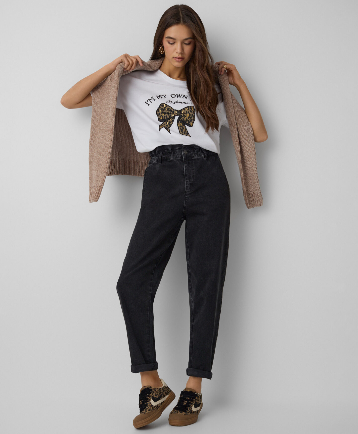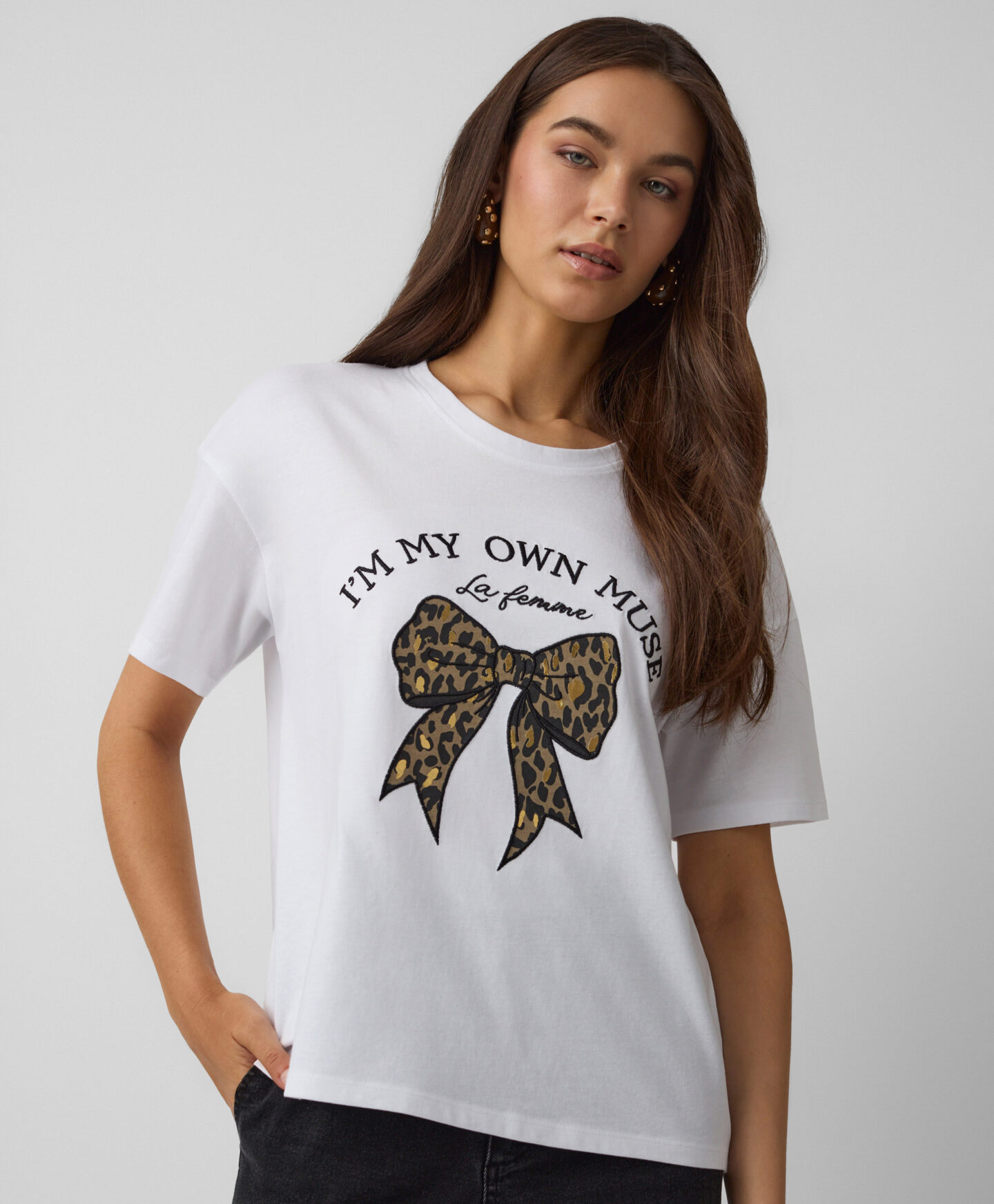 Marškinėliai su kaspinėliu, pasiūti iš 100 % medvilnės, puikiai tinka tiek kasdienai, tiek ypatingoms progoms. Medžiaga draugiška odai ir užtikrina patogumą visą dieną. Priekyje esantis kaspinėlis yra subtilus, tačiau ryškus akcentas, suteikiantis žavesio bet kokiai aprangai.