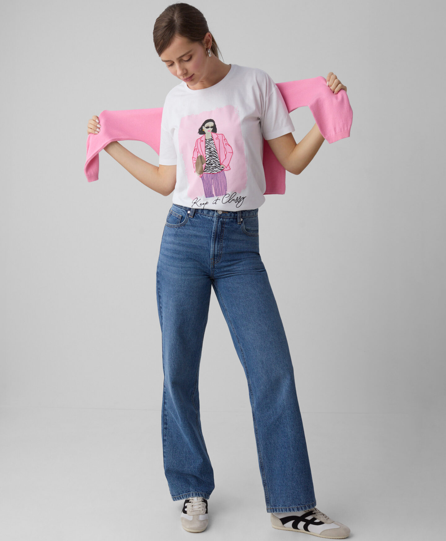 Marškinėliai, pasiūti iš 100 % medvilnės, malonūs odai, pralaidūs orui ir lengvai prižiūrimi. Natūrali medžiaga užtikrina komfortą visą dieną. Marškinėlius puošia stilinga spauda, kuri suteikia originalumo. Tai puikus pasirinkimas visiems, norintiems išreikšti save per drabužius.