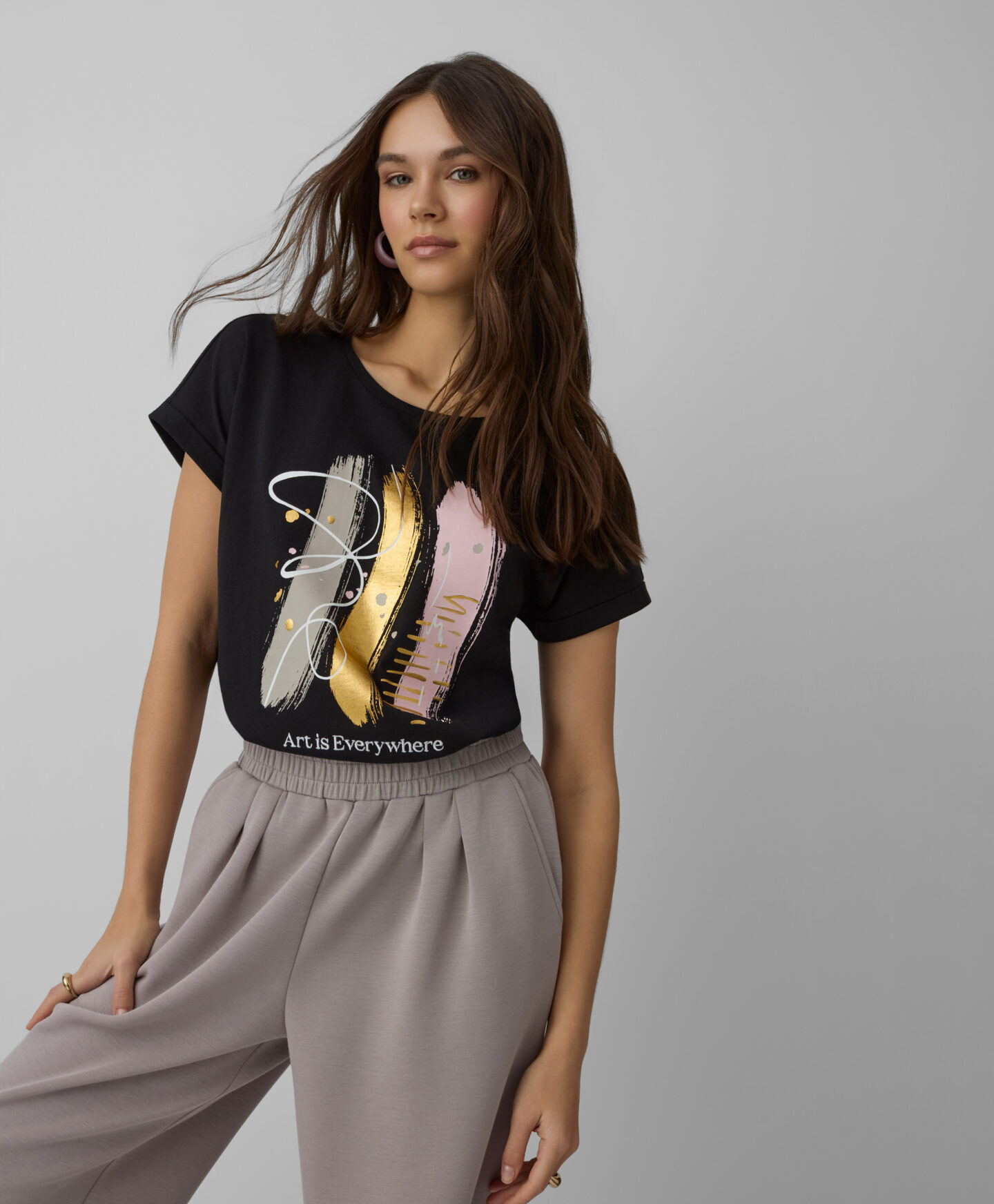 Marškinėliai, pasiūti iš 100 % medvilnės, trumpomis rankovėmis puikiai tiks patogios aprangos gerbėjams. Modelis leidžia laisvai judėti ir suteikia laisvumo bet kokiam įvaizdžiui. Priekyje esantis ryškus grafinis piešinys traukia akį.