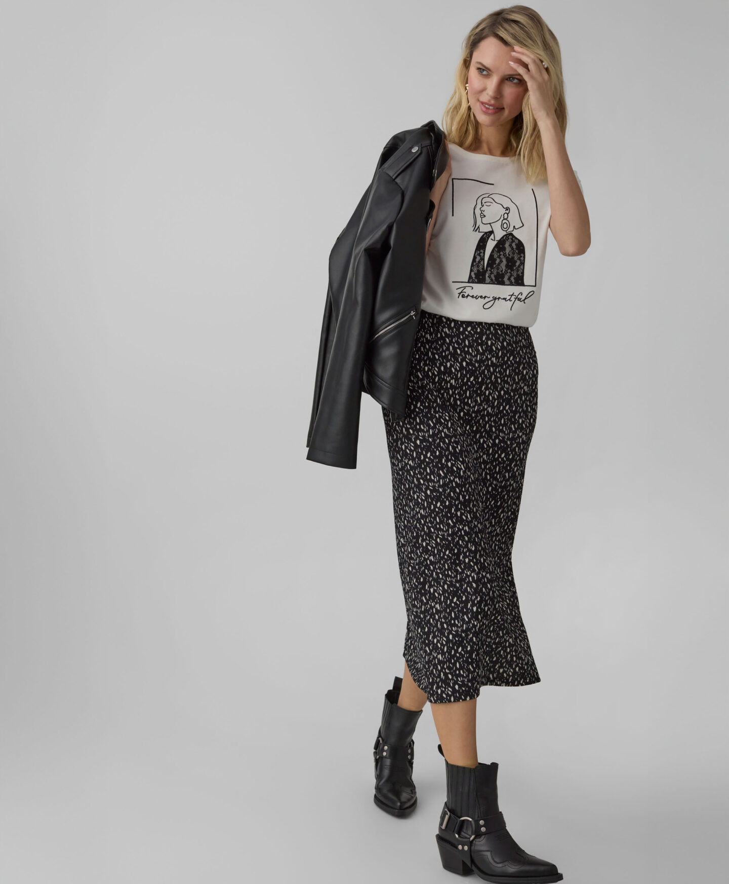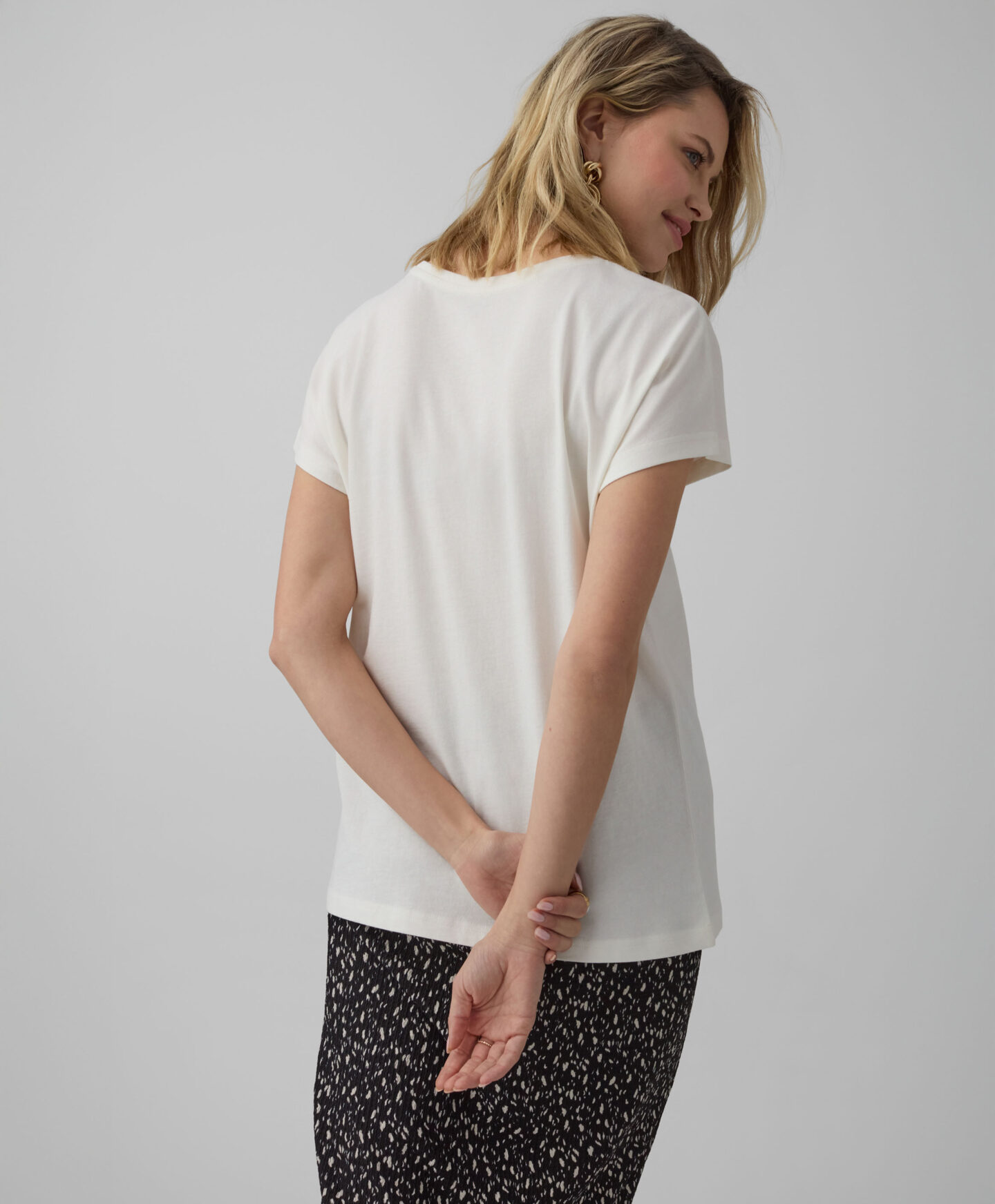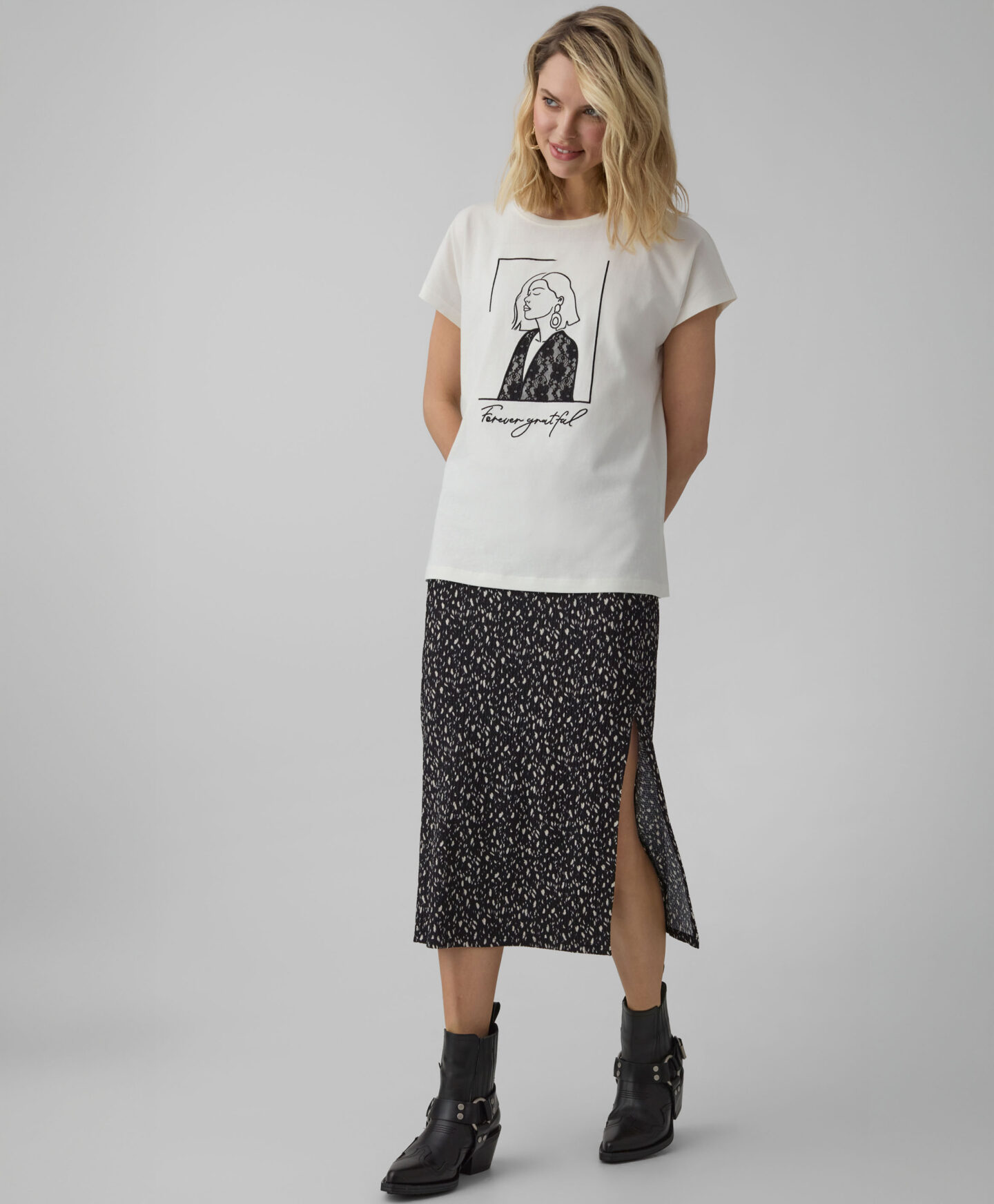 Marškinėliai, 100 % medvilnės, išsiskiria priekyje esančia spauda. Iš pirmo žvilgsnio klasikiniai, jie patraukia dėmesį madingomis detalėmis ir spindi kiekvienoje spintoje. Marškinėliai tinka ir prie džinsų, ir prie sijono. Juos taip pat galite derinti su elegantiškomis kelnėmis ir švarkeliu ypatingomis progomis. Jie lengvi, švelnūs ir leidžia odai kvėpuoti.