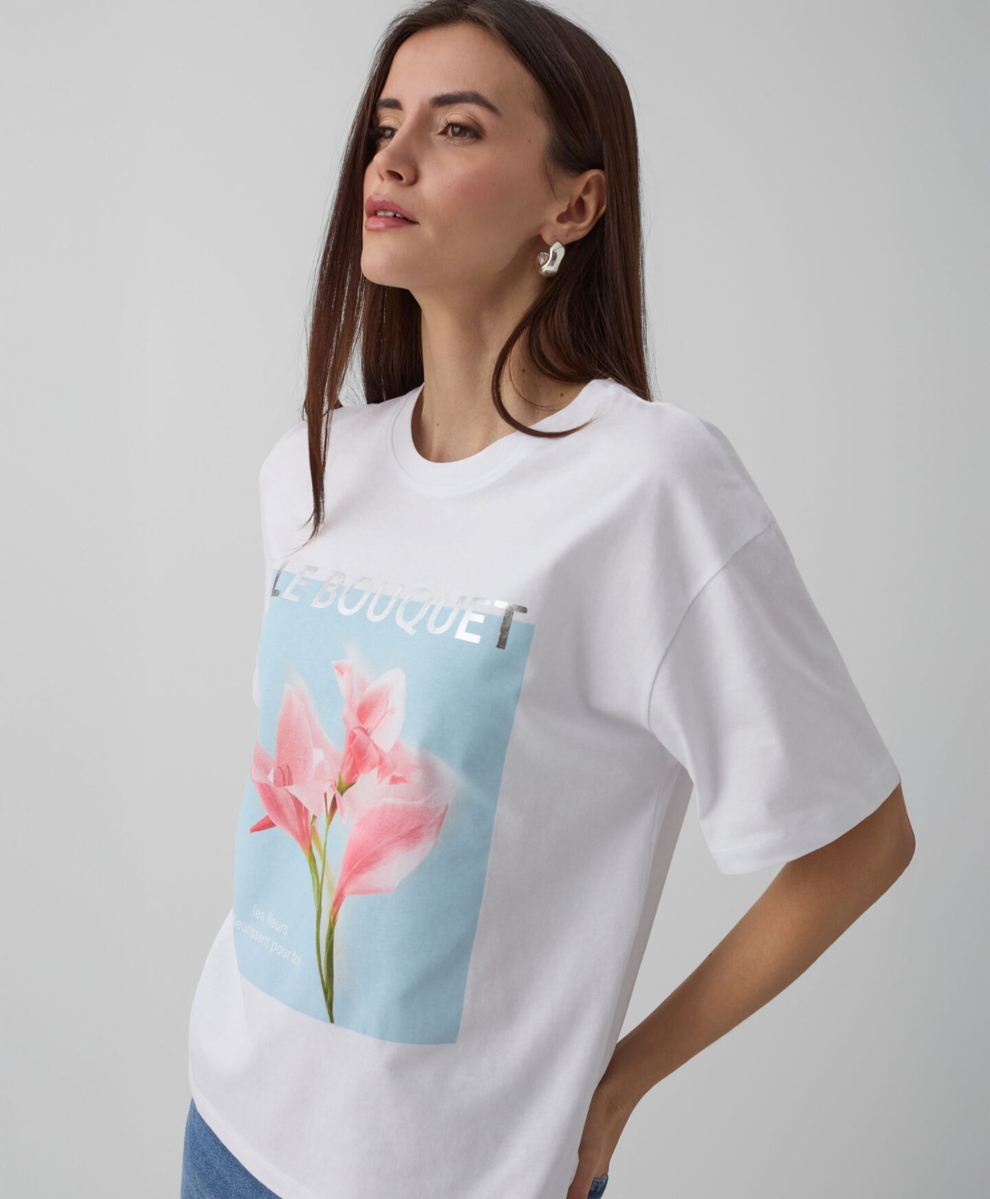 Marškinėliai, 100 % medvilnės, su gėlių motyvais, įneš gaivos į jūsų garderobą! Jie lengvi, švelnūs ir leidžia odai kvėpuoti. Priekyje esanti spauda patraukia dėmesį ir leidžia marškinėliams išsiskirti iš kitų. Derinami su klasikiniais džinsais, jie sukuria universalų derinį, puikiai tinkantį susitikimams su draugais, kasdieniam apsipirkimui ar pasivaikščiojimams su šunimi.