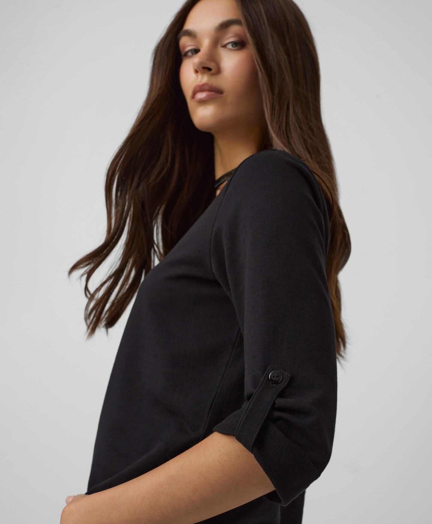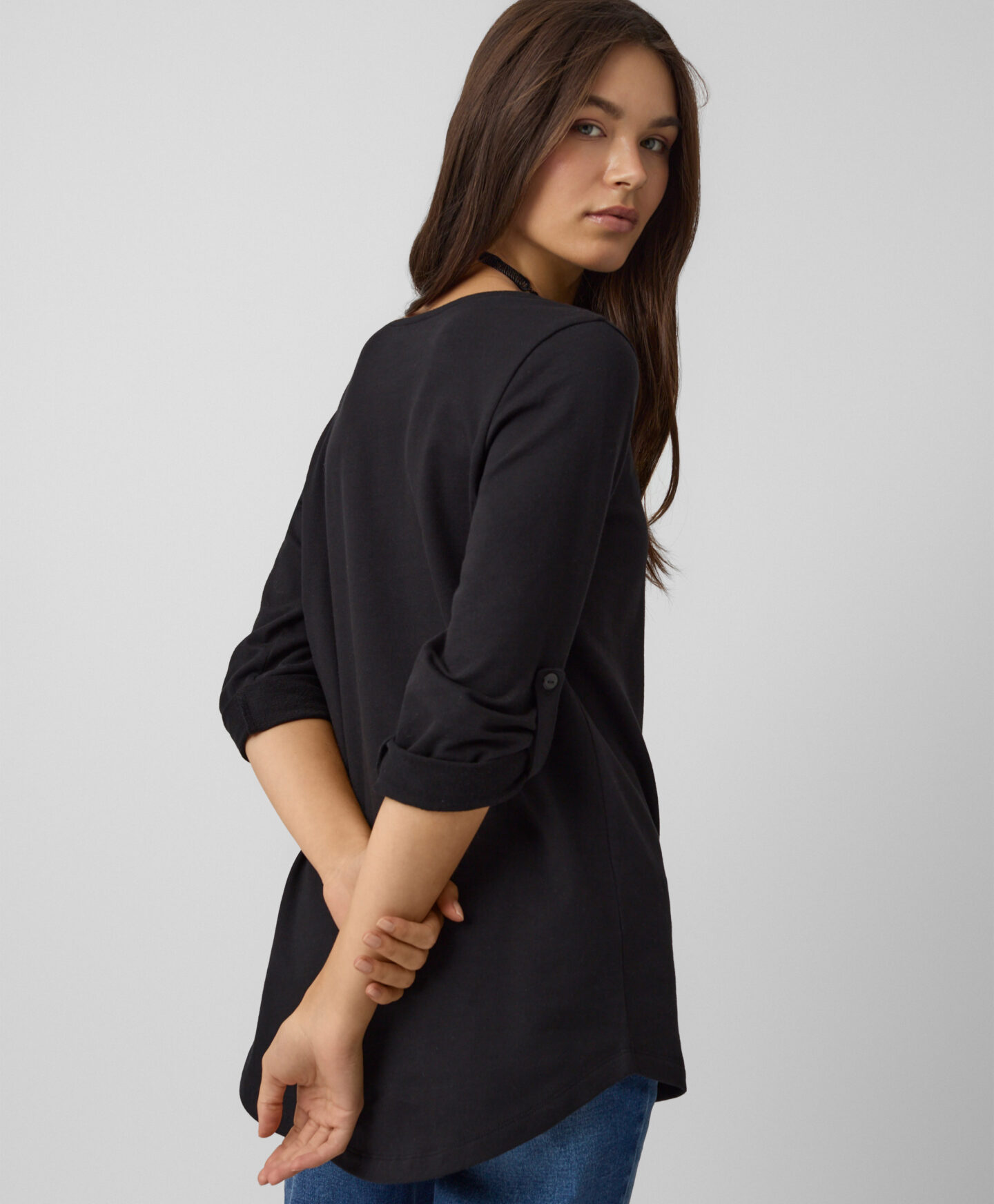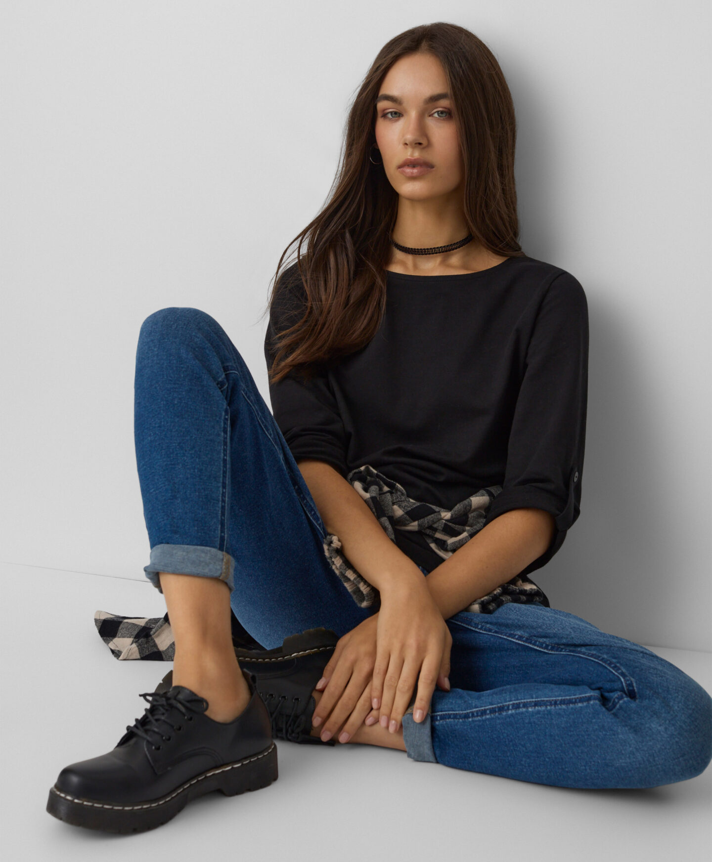 Marškinėliai apvalia apačia su atraitytomis rankovėmis – idealus pasirinkimas vertinantiems eleganciją ir patogumą. Dėl unikalaus dizaino jie suteiks žavesio bet kokiai aprangai ir pabrėš jūsų individualų stilių. Dėl didelio medvilnės kiekio sudėtyje marškinėliai yra pralaidūs orui ir malonūs odai.