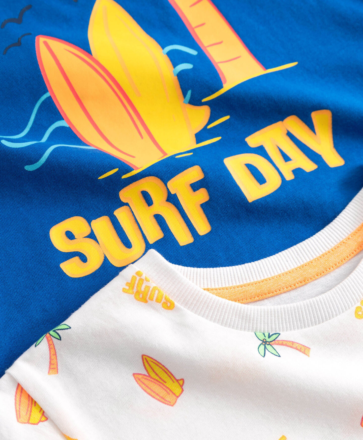 Šie marškinėliai mažyliams, pasiūti iš 100 % medvilnės, 2 vnt., derina savyje patogumą ir madingiausias vasaros spalvas. Sukurti atsižvelgiant į švelnią mažylio odelę, jie užtikrina patogumą, kurio reikia jūsų mažyliui žaidžiant ir tyrinėjant pasaulį. Rinkinį sudaro dveji skirtingų raštų marškinėliai.