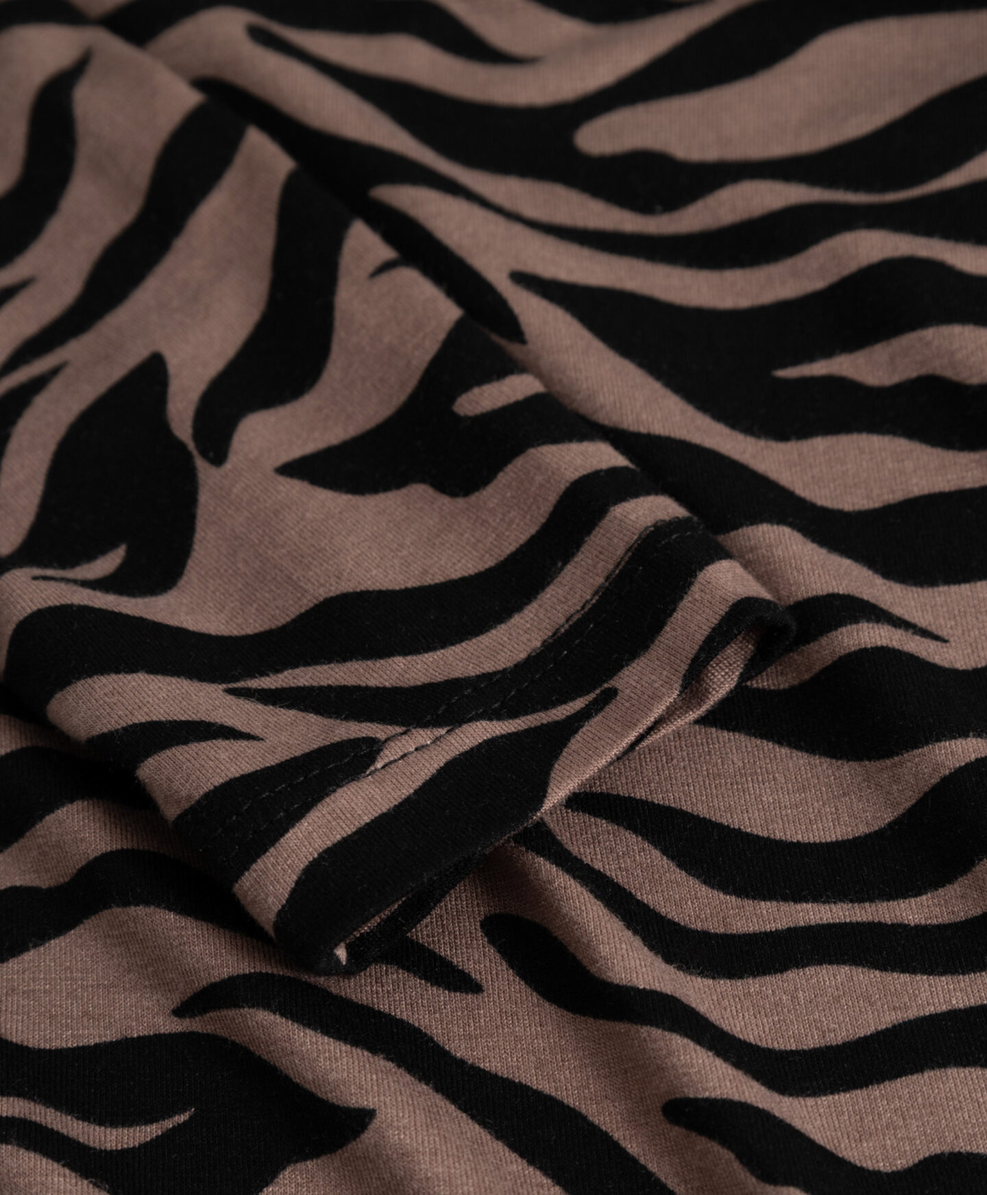 Marškinėliai su tigro raštu – tai idealus pasirinkimas visiems, mėgstantiems stilingus drabužius. Jie yra minkšti, pralaidūs orui ir malonūs dėvėti. Dėl didelio viskozės kiekio sudėtyje marškinėliai priglunda prie kūno formų ir užtikrina patogumą visą dieną. Juos galite derinti su elegantiškomis kelnėmis ir aulinukais, jei norite oficialesnio stiliaus, arba su džinsais, kad atrodytumėte neformaliau.