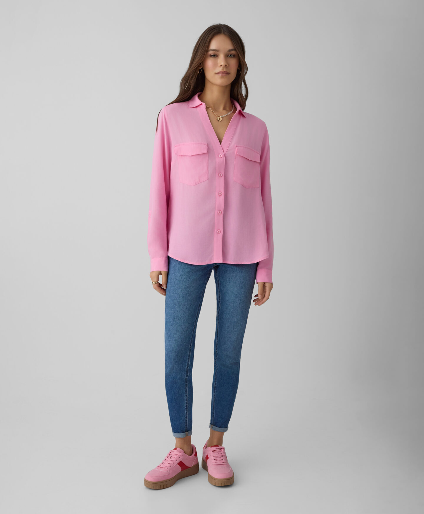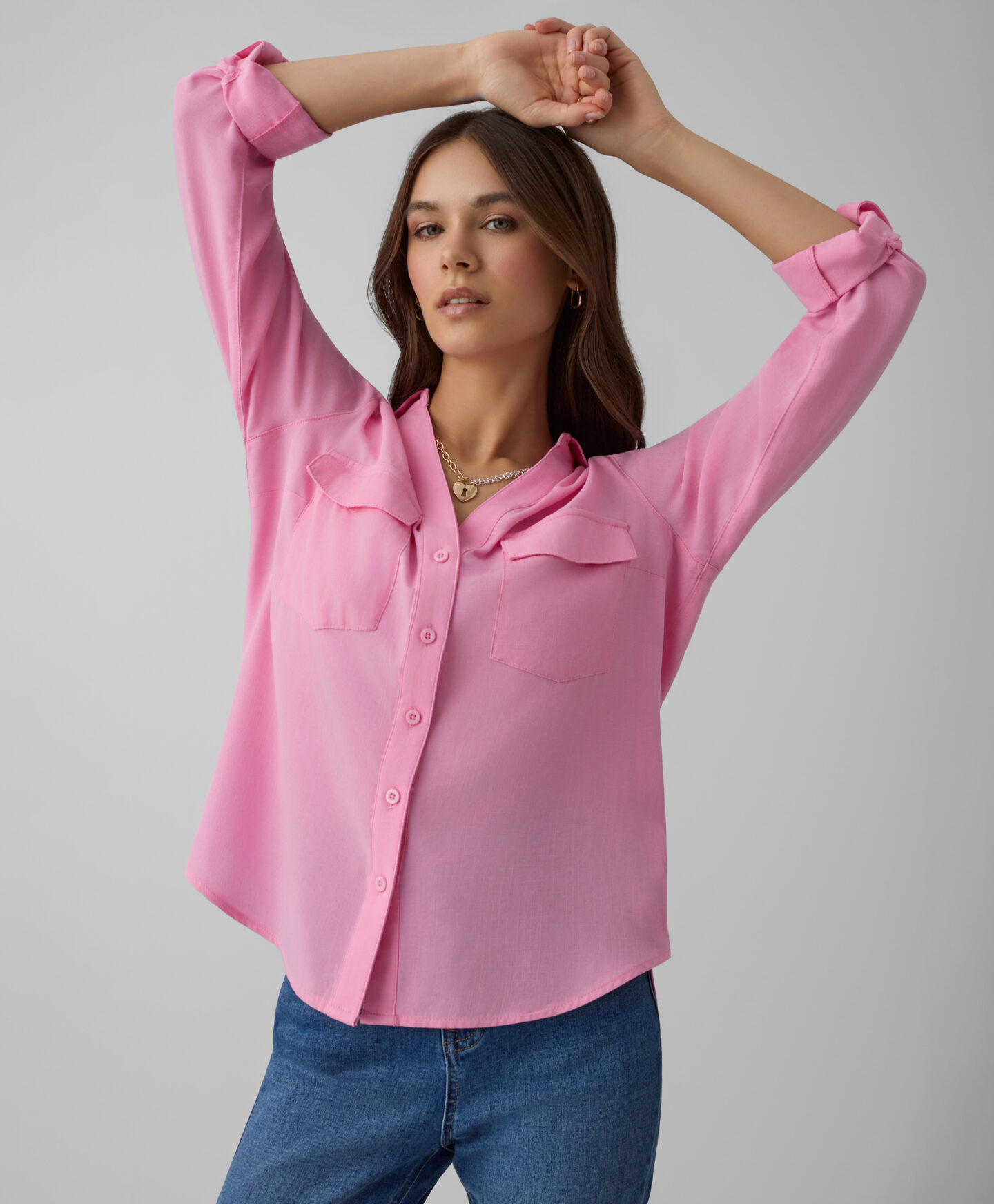 Rožiniai marškiniai su kišenėmis, pasiūti iš 100 % viskozės, puikiai tinka tiek kasdienai, tiek ypatingoms progoms. Jie yra pralaidūs orui, minkšti ir puikiai priglunda prie kūno. Dvi priekinės kišenės suteikia charakterio.