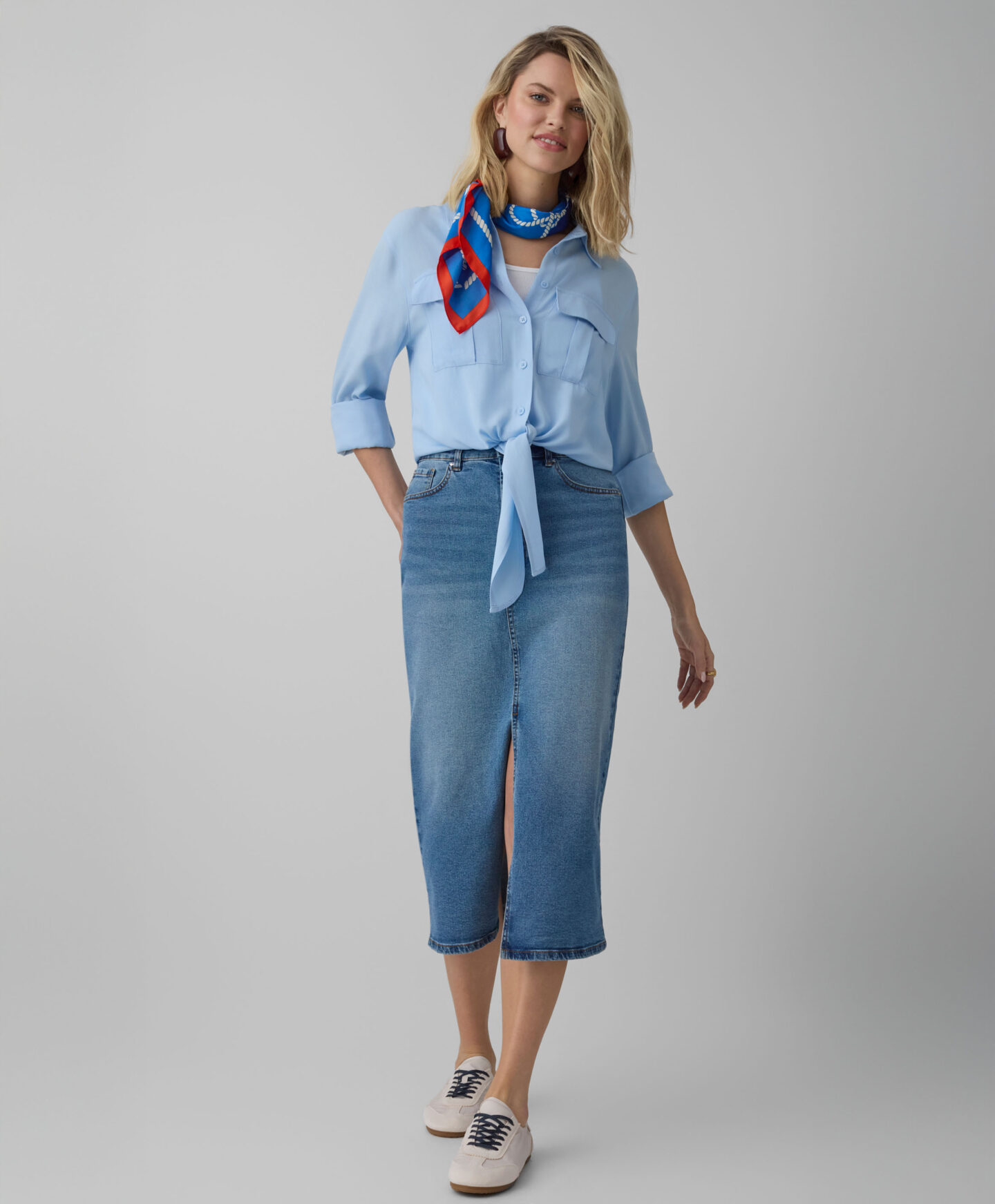 Marškiniai, 100 % viskozės, surišami apačioje – tai elegantiškas pasiūlymas visiems, mėgstantiems komfortą. Praktišką surišimą galite įvairiai pritaikyti prie savo figūros. Marškiniai puikiai dera tiek prie laisvalaikio, tiek prie oficialesnių garderobo elementų, tinkančių darbe, susitikimuose ar įvairiuose renginiuose. Medžiagą lengva prižiūrėti ir ji ilgai išsaugo savo spalvą.