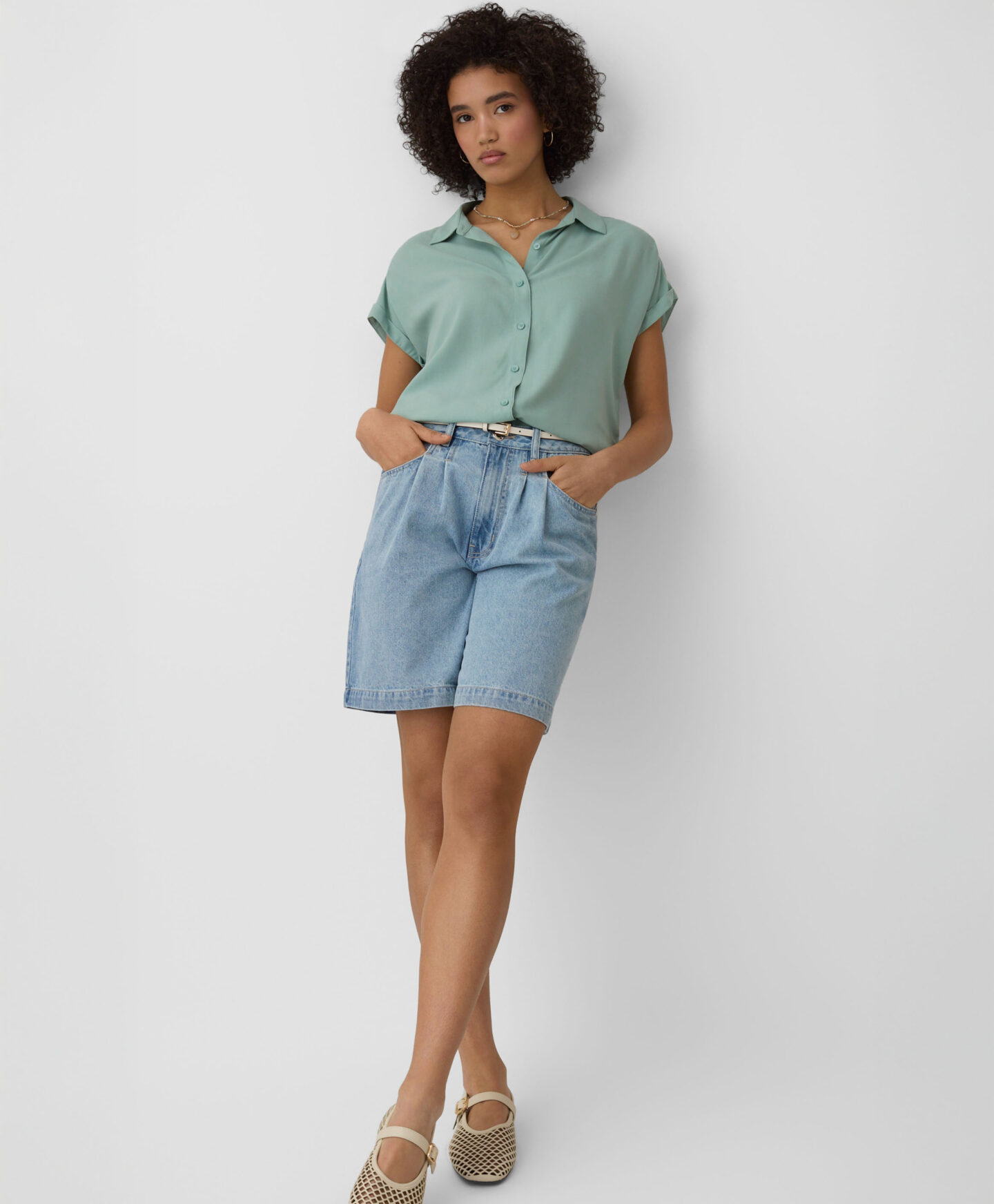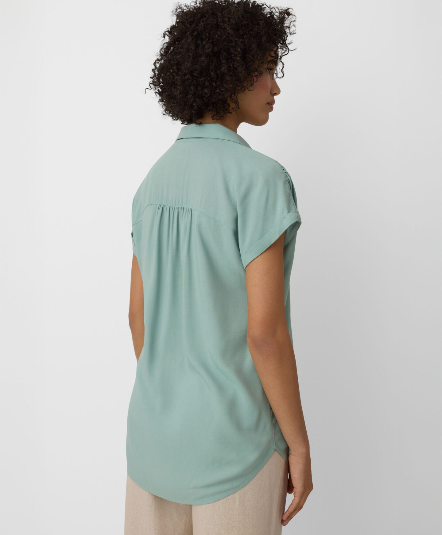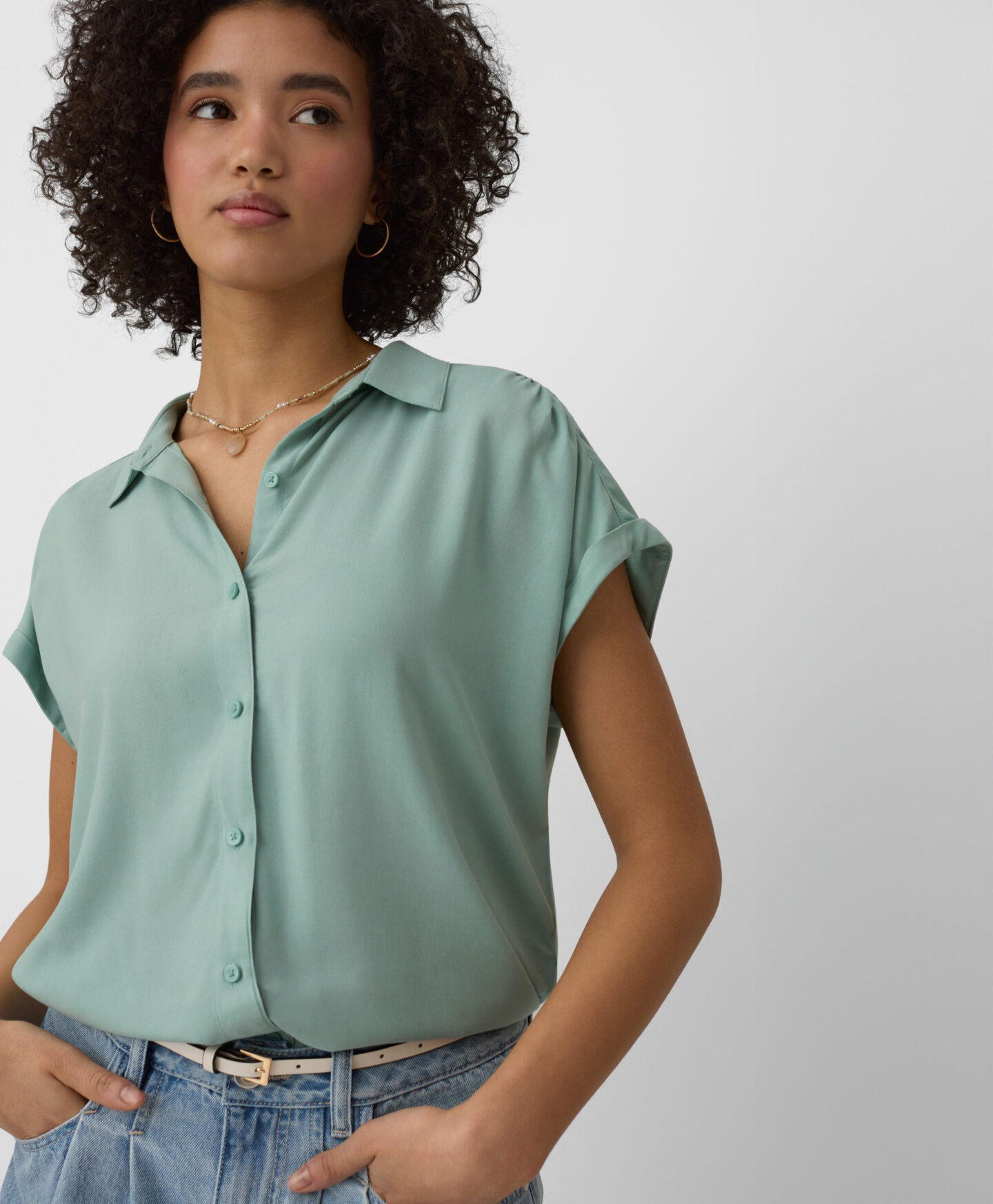 Ši 100 % viskozės palaidinė trumpomis rankovėmis puikiai tinka šiltoms dienoms. Ji lengva, orui pralaidi ir leidžia odai kvėpuoti. Minkšta medžiaga užtikrina komfortą visą dieną. Palaidinė puikiai derės su šortais, mėgstamais džinsais ar elegantiškomis kelnėmis.