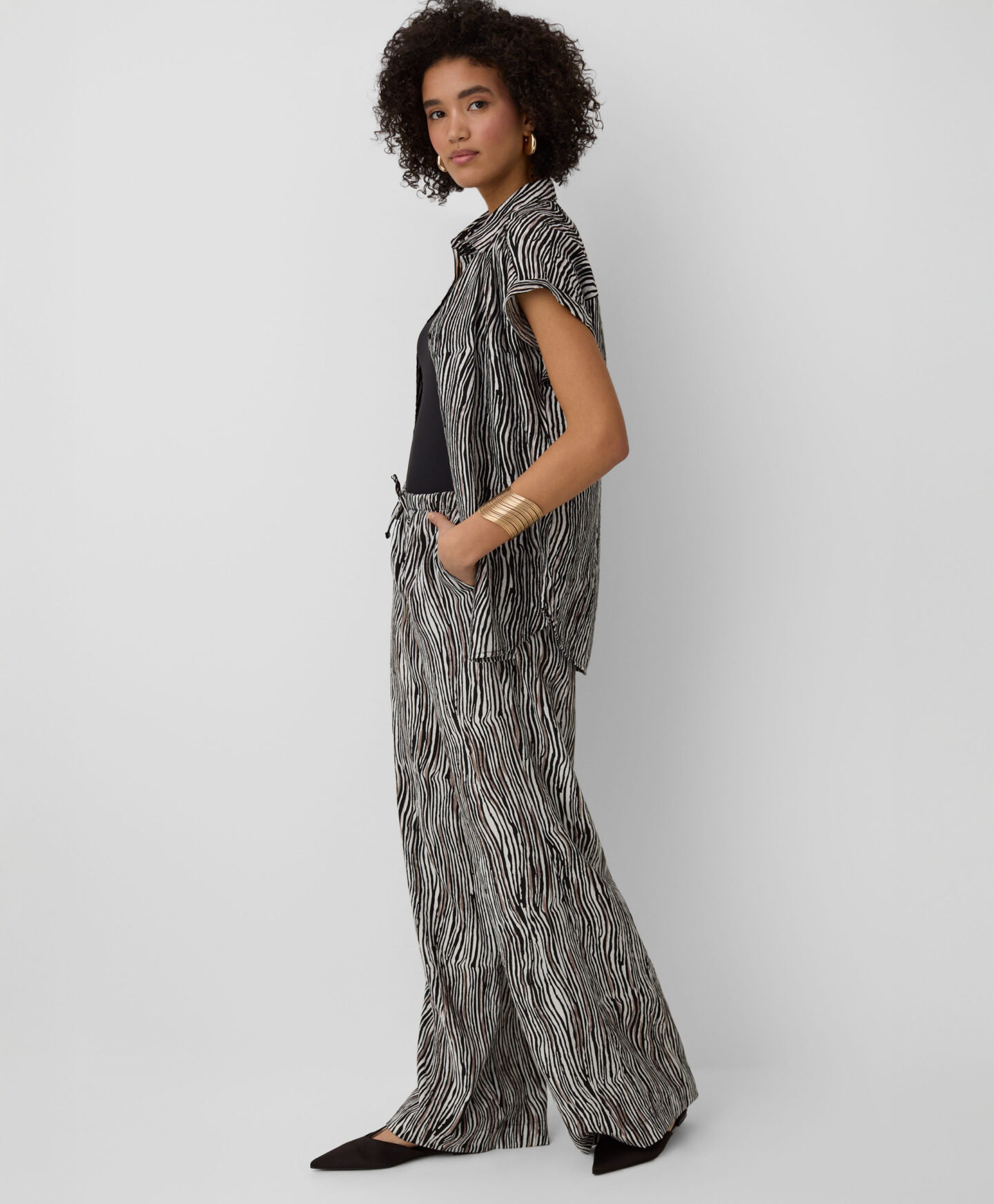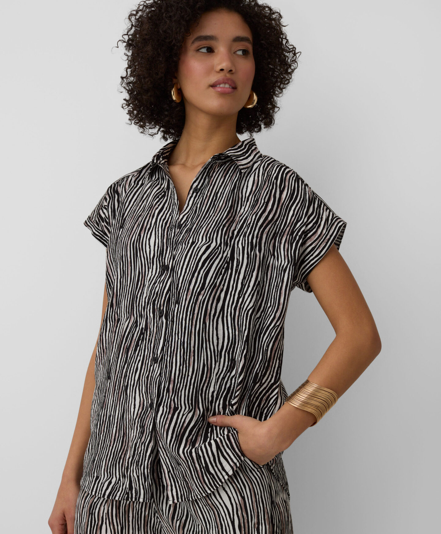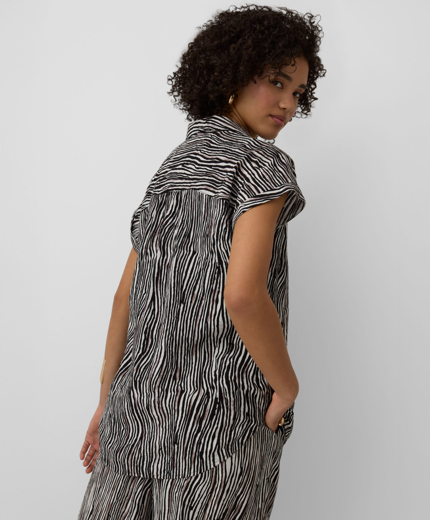 Ši 100 % viskozės palaidinė su trumpomis rankovėmis puikiai tinka šiltoms dienoms. Ji pralaidi orui, lengva ir leidžia odai kvėpuoti. Minkšta medžiaga patogiai apgaubia kūną, užtikrindama komfortą visą dieną. Palaidinė puikiai derės su šortais, mėgstamais džinsais ar elegantiškomis kelnėmis.