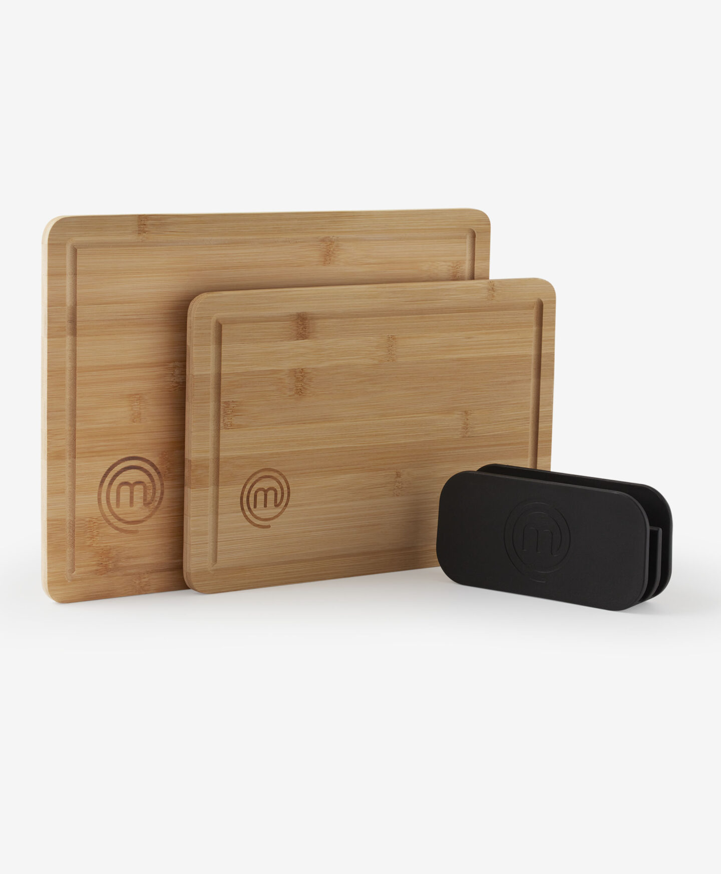 MASTERCHEF pjaustymo lentelių rinkinys su stovu – puikus pasirinkimas tiems, kurie virtuvėje vertina funkcionalumą ir estetiką. Iš bambuko pagamintos lentelės yra ne tik patvarios, bet ir higieniškos. Stovas patogus laikyti lentelėms, todėl sutaupoma vietos ant stalviršio. Įvairių dydžių rinkinys idealiai tinka daržovėms, mėsai ir duonai pjaustyti.