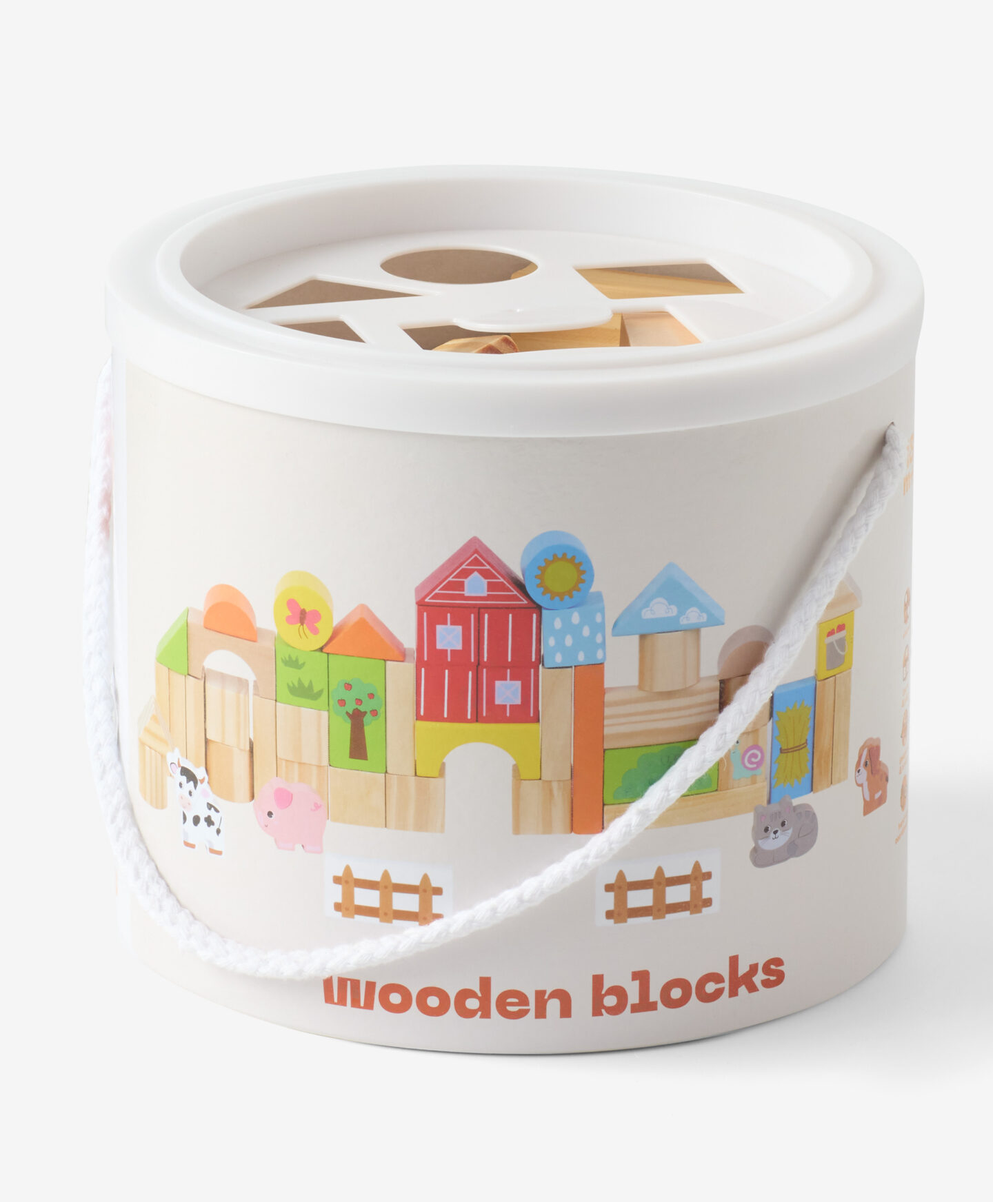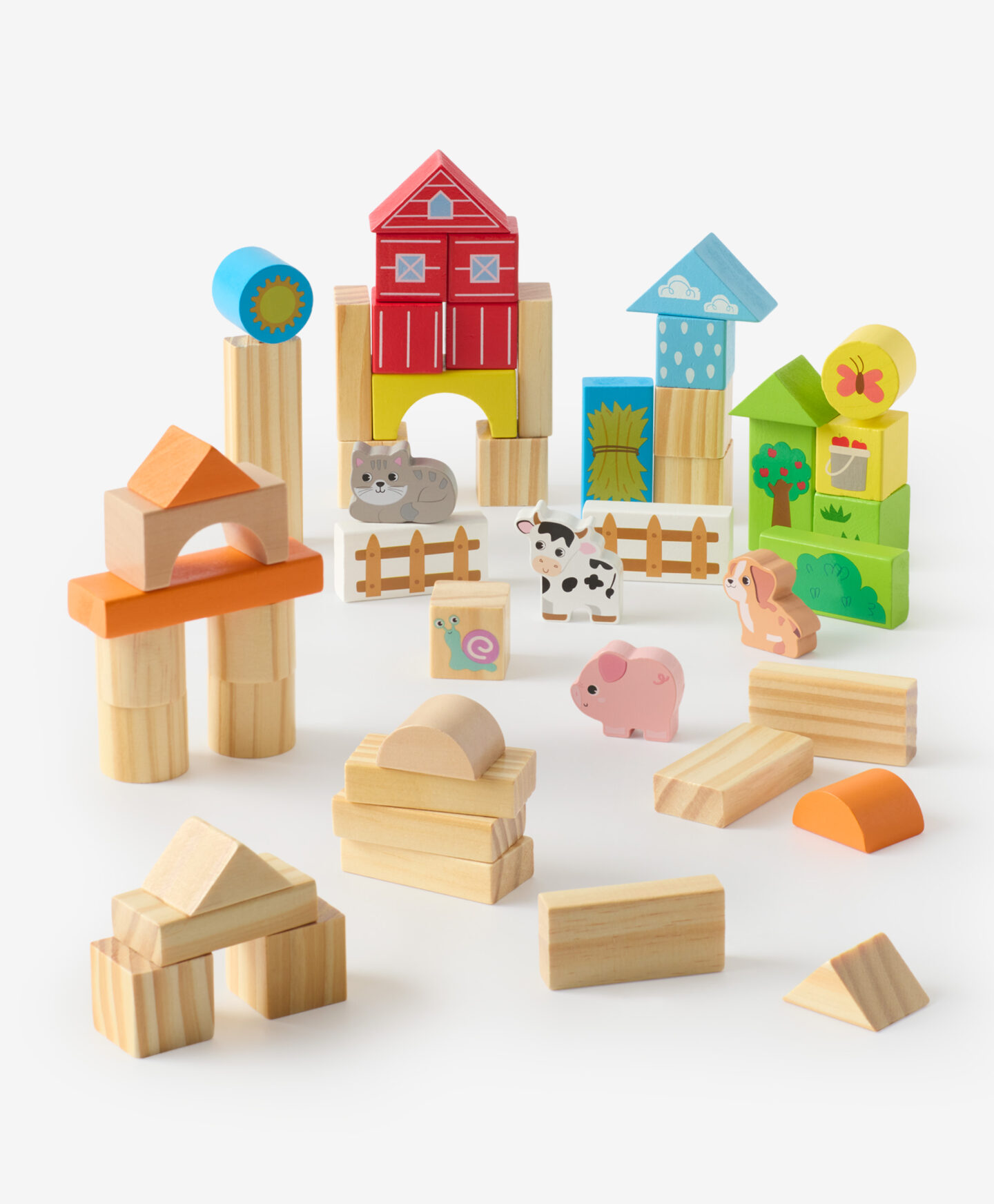 Medinių kaladėlių rinkinys, kurį sudaro 50 kaladėlių, leidžia statyti bokštus, namus ir ištisus miestus. Formų įvairovė skatina kūrybišką konstravimą. Žaidimas padeda lavinti motorinius įgūdžius ir ugdyti kantrybę.