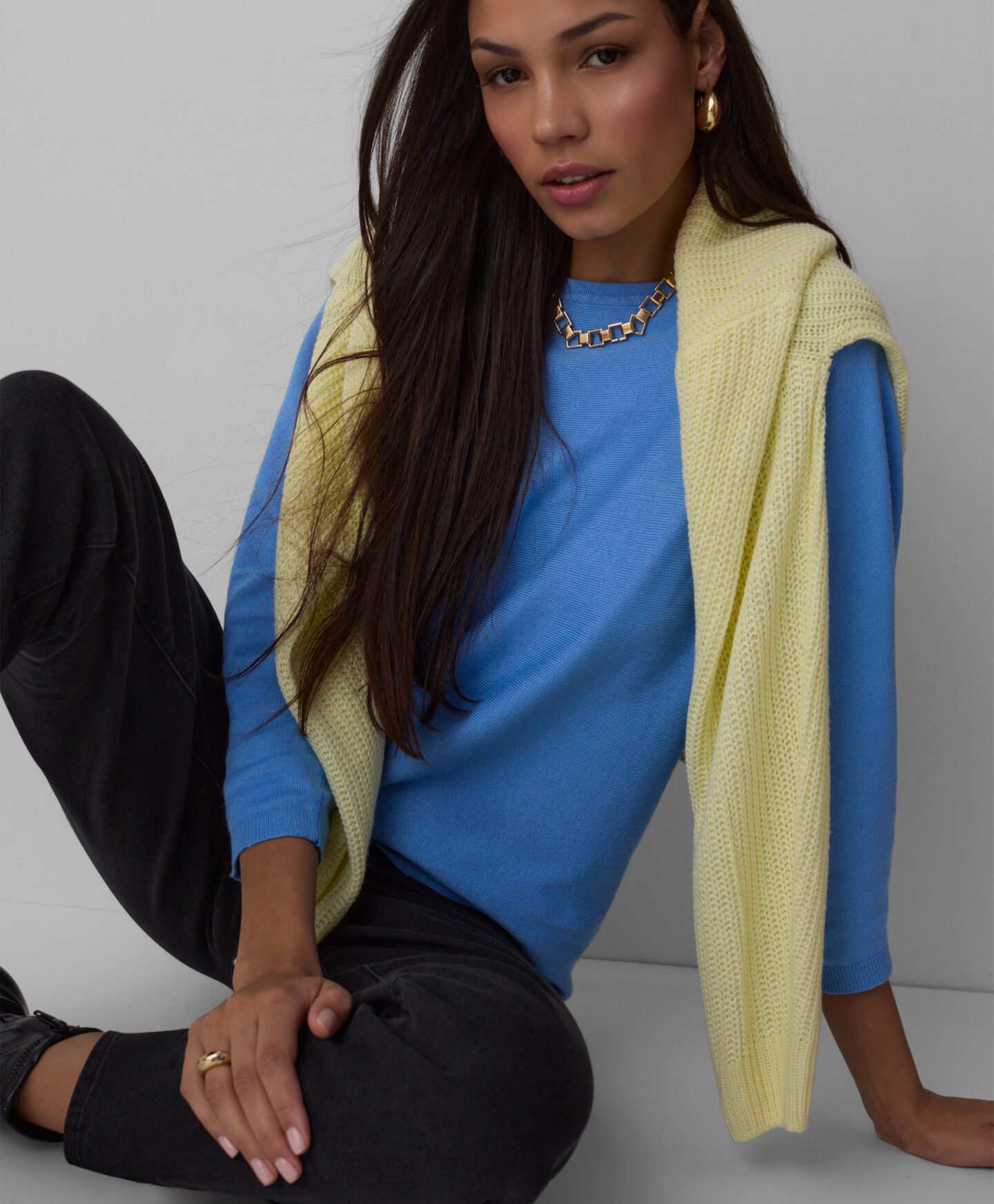 Mėlynas kimono stiliaus modelio megztinis su viskoze yra malonus liesti, šiltas ir labai universalus. Puikiai tinka įvairioms progoms. Jis nevaržys judesių ir suteiks lengvumo bet kokiai aprangai. Puikiai tinka biure, einant išgerti kavos su draugais ar į romantišką pasimatymą. Galima rinktis iš dviejų spalvų.
