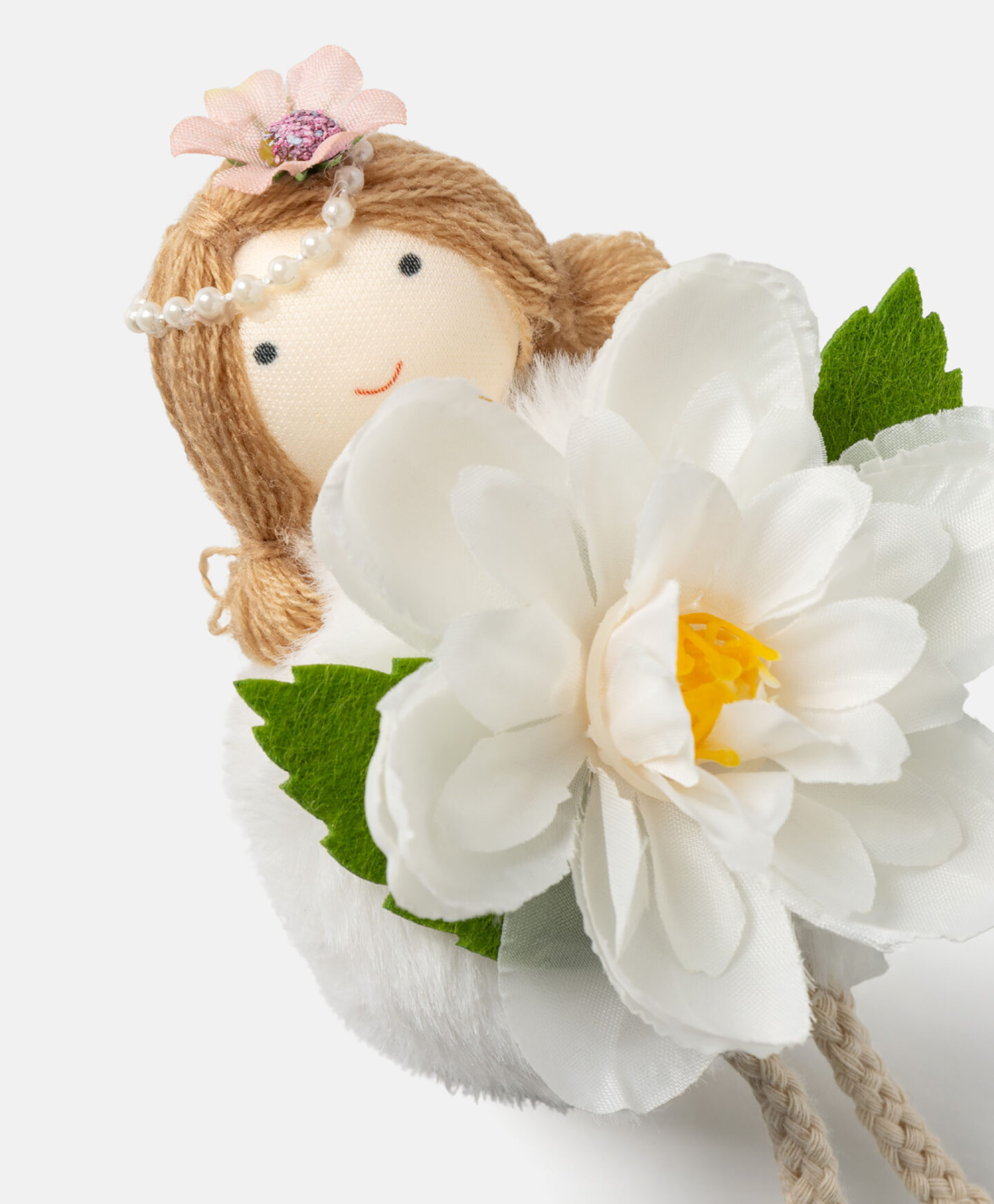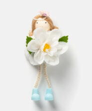 Tekstilinis mergaitės su balta gėle formos pakabukas yra žavinga dekoracija iš minkšto audinio, kuri bet kuriam interjerui suteiks pavasariško lengvumo. Puikiai tinka kaip centrinis akcentas, vaikų kambario dekoracija arba raktų pakabukas rankinei ar kuprinei. Jis yra lengvas, minkštas ir lengvai valomas. Galimi įvairūs dizainai.