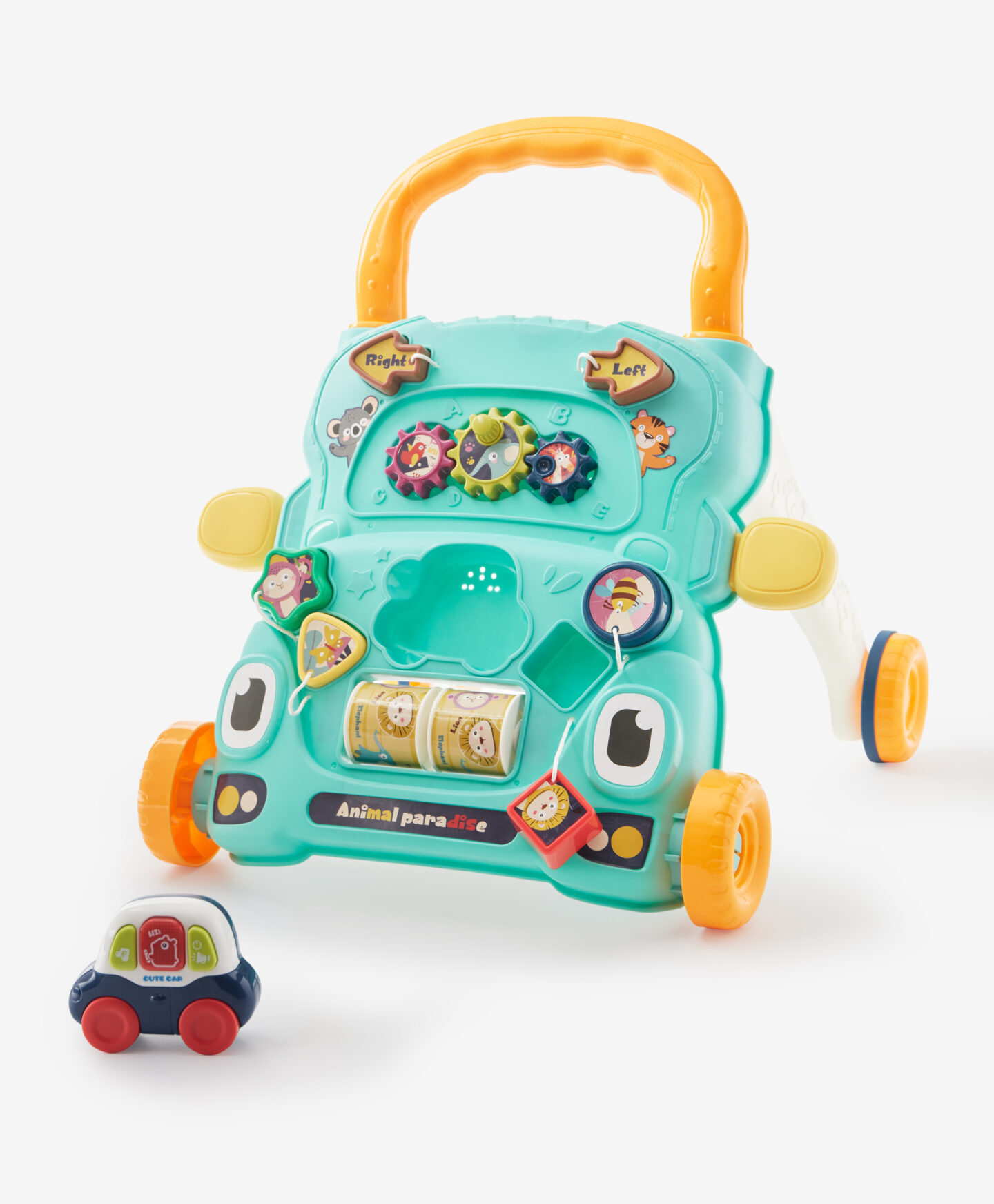 Mokomoji vaikštynė padeda vaikui žengti pirmuosius žingsnius ir siūlo įvairios veiklos skydelį. Spalvingi elementai skatina spausti, sukti, o tai padeda lavinti vikrumą ir koordinaciją. Dėl stabilios konstrukcijos vaikštynė suteikia saugumo jausmą ir motyvuoja judėti. Baterijos parduodamos atskirai.