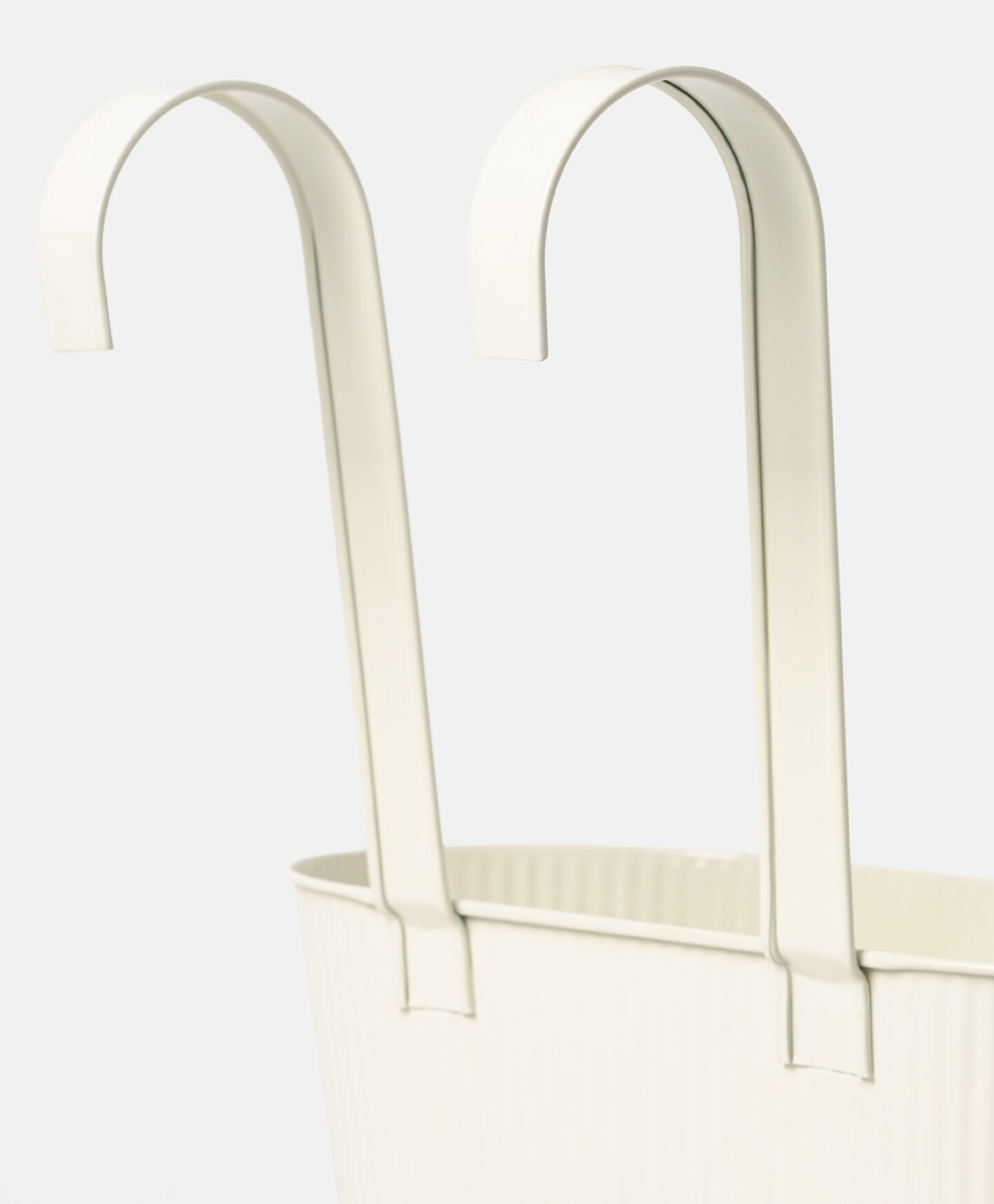 Pailgas baltas pakabinamas vazono dėklas su briaunotomis sienelėmis patraukia dėmesį pavasarišku dizainu. Patogiai tvirtinamas kabliukais ant balkono turėklų ar medinės sienos, maksimaliai išnaudojant turimą erdvę. Galima rinktis iš keleto variantų.