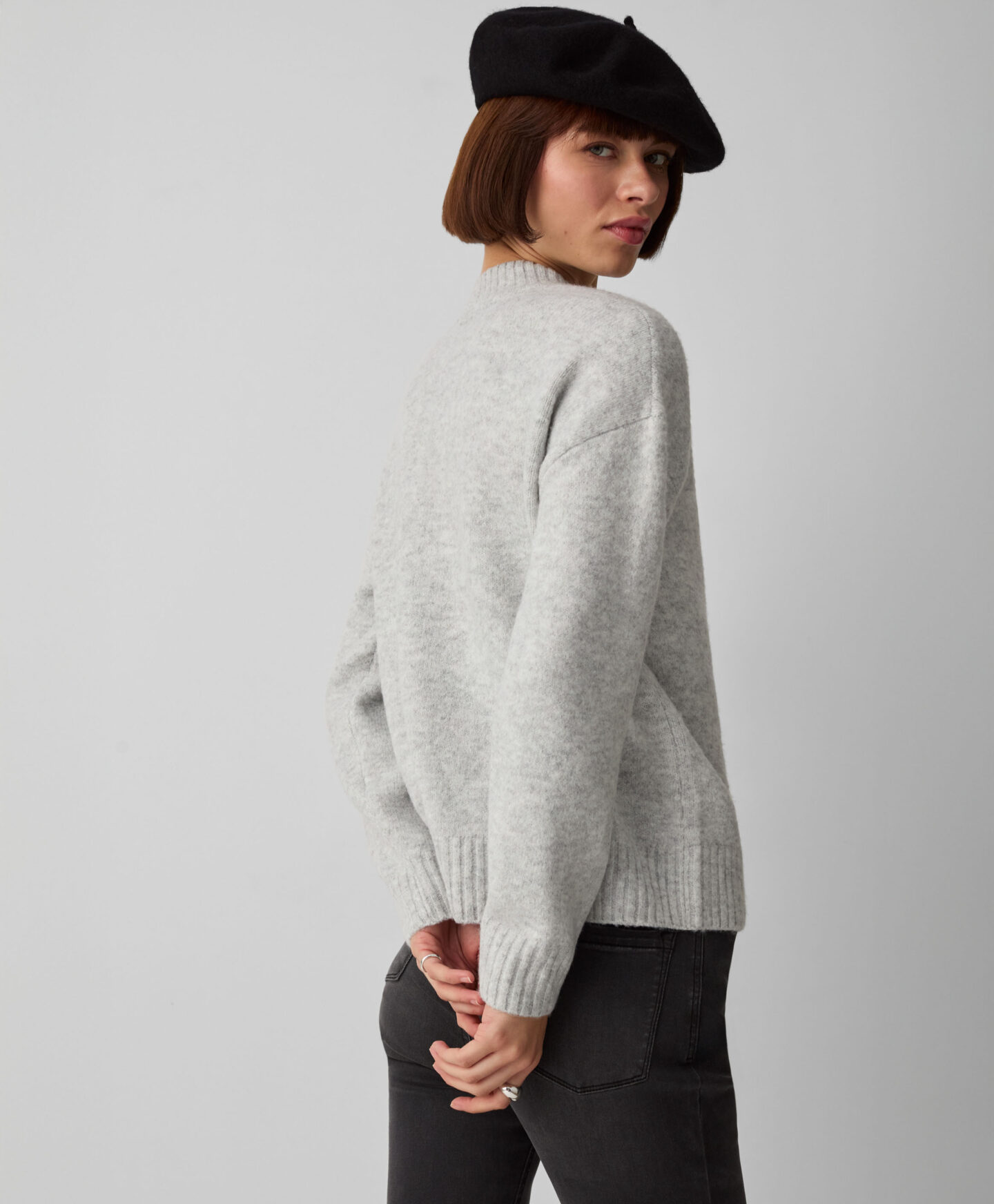 Pilkas megztinis su apykakle – puikus būdas kovoti su rudens ir žiemos vėsa. Jis storas, šiltas ir stilingas. Puikiai tinka biure, susitikimams su draugais ar reikalams mieste. Jis puikiai atrodys su džinsais, elegantiškomis kelnėmis ir sportiškesnio stiliaus kelnėmis. Galima rinktis iš dviejų spalvų.