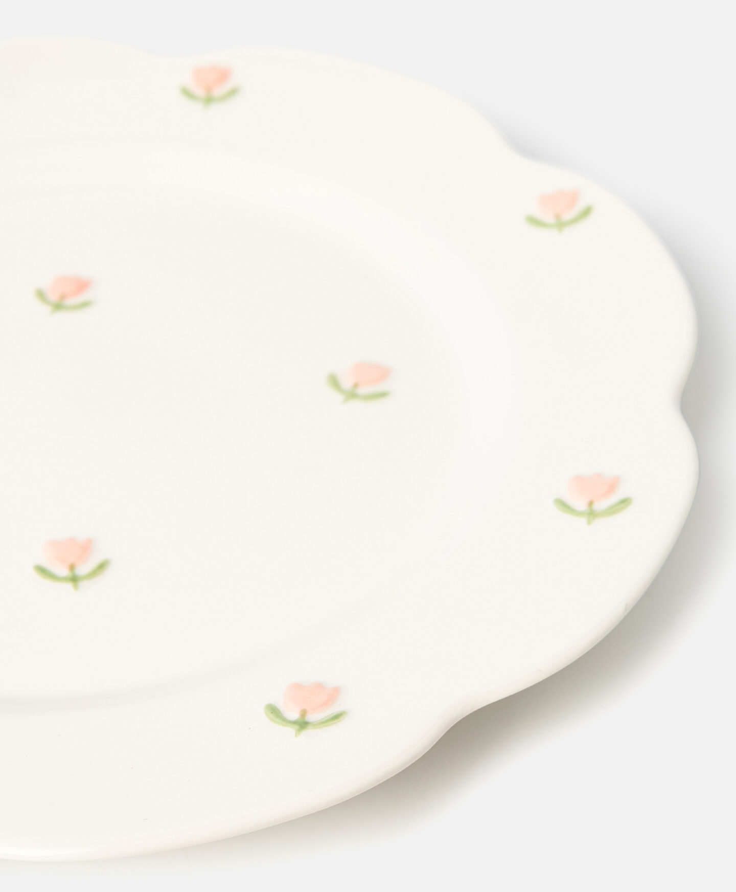 Porcelianinė lėkštė su gražiu gėlių raštu. Dekoratyviniai netaisyklingos formos apvadai suteikia žavesio. Pagaminta iš patvaraus, kasdieniam naudojimui atsparaus porceliano, ji puikiai tinka greitiems pusryčiams ar oficialiai vakarienei.
