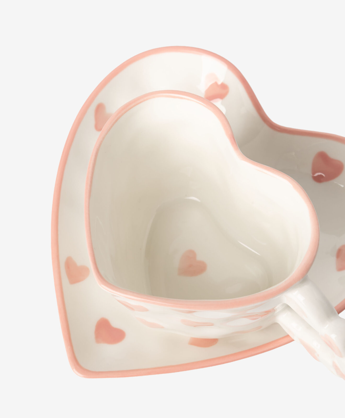 Porcelianinis širdelės formos puodelis su lėkštute puikiai tinka rytinei kavai, popietinei kakavai su zefyrais ar vakarinei arbatai žiemos metu. Unikalaus dizaino puodelis išsiskiria iš kitų stalo indų. Romantiška forma ir raštas rodo, kad tai nuoširdi dovana, puikiai tinkanti artėjančiai Valentino dienai.