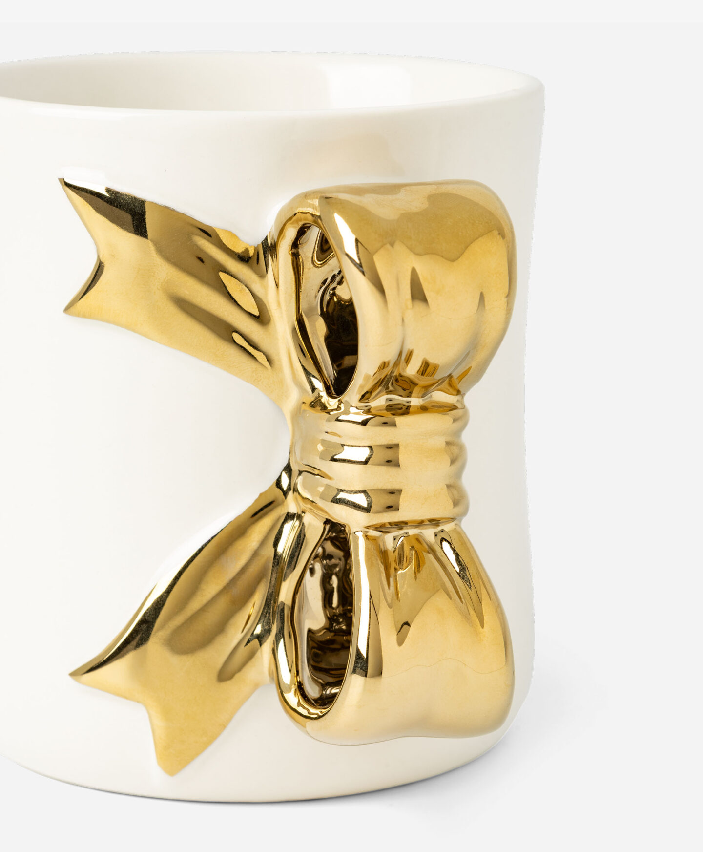 Puodelis su aukso spalvos kaspinėlio formos ąsele stebina savo dizainu. Jis puikiai tinka kavai, arbatai ar kitiems mėgstamiems gėrimams ir suteikia nepakartojamų estetinių įspūdžių. Jis papildys jūsų stalo indų kolekciją ir taps puikia dovana artimam žmogui.