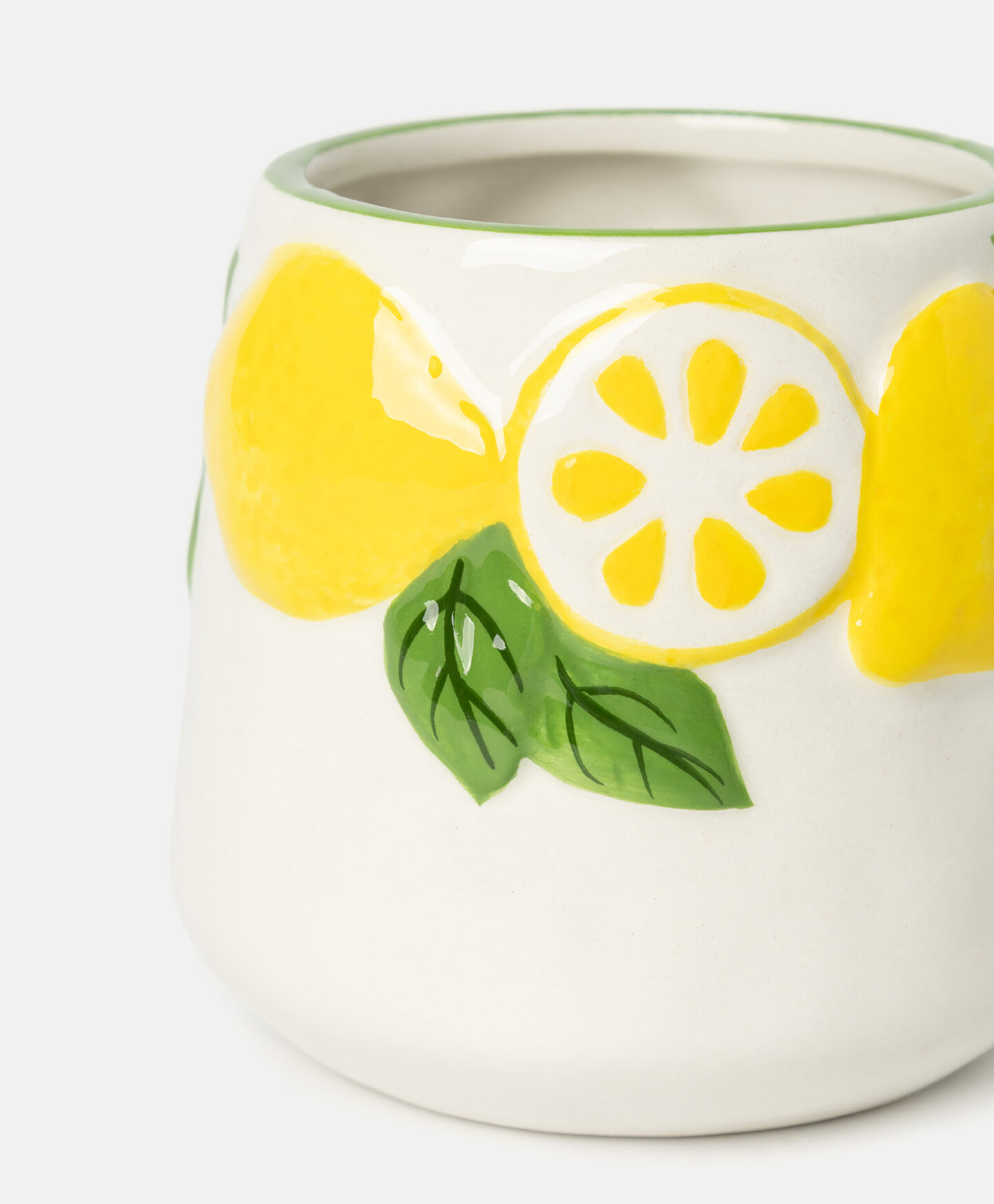 Šis puodelis su reljefiniu citrinų raštu suteiks gaivumo ir spalvų jūsų indų kolekcijai. Jis puikiai tinka mėgstamai kavai ar arbatai. Sultingas dizainas – dar malonesnėms akimirkoms!