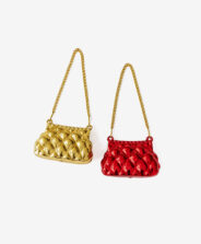 Mažų rankinių formos Kalėdų eglutės žaisliukai suteiks eglutei spindesio ir elegancijos. Rinkinį sudaro dvi miniatiūrinės rankinės – aukso spalvos ir raudona – su dekoratyvine grandinėle, atstojančią rankena. Blizgi, dygsniuota tekstūra gražiai atspindi lempelių šviesą, taip sukurdama įspūdingą puošmeną, kuri laužo kalėdinių eglutės žaisliukų formų tradicijas. Šis originalus akcentas patiks stilingų detalių mėgėjams.