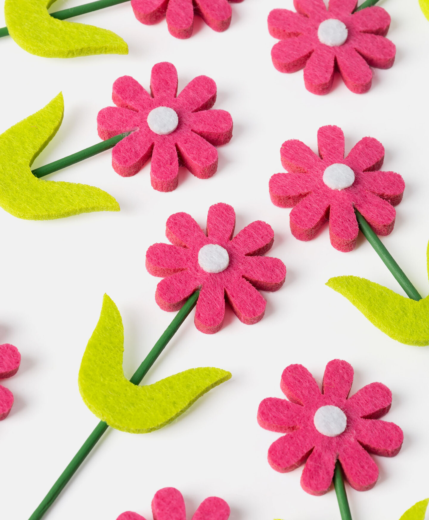 Raudonos veltinio gėlės rankdarbiams suteiks žavesio ir grožio bet kokiai puokštei, vazai ar gėlių kompozicijai. Jos minkštos, lengvos ir neįtikėtinai jaukios. Dėl ryškių spalvų ir standaus stiebo, šios gėlės iš veltinio yra universalios. Vienintelė riba – jūsų vaizduotė! Galima rinktis iš įvairių spalvų.