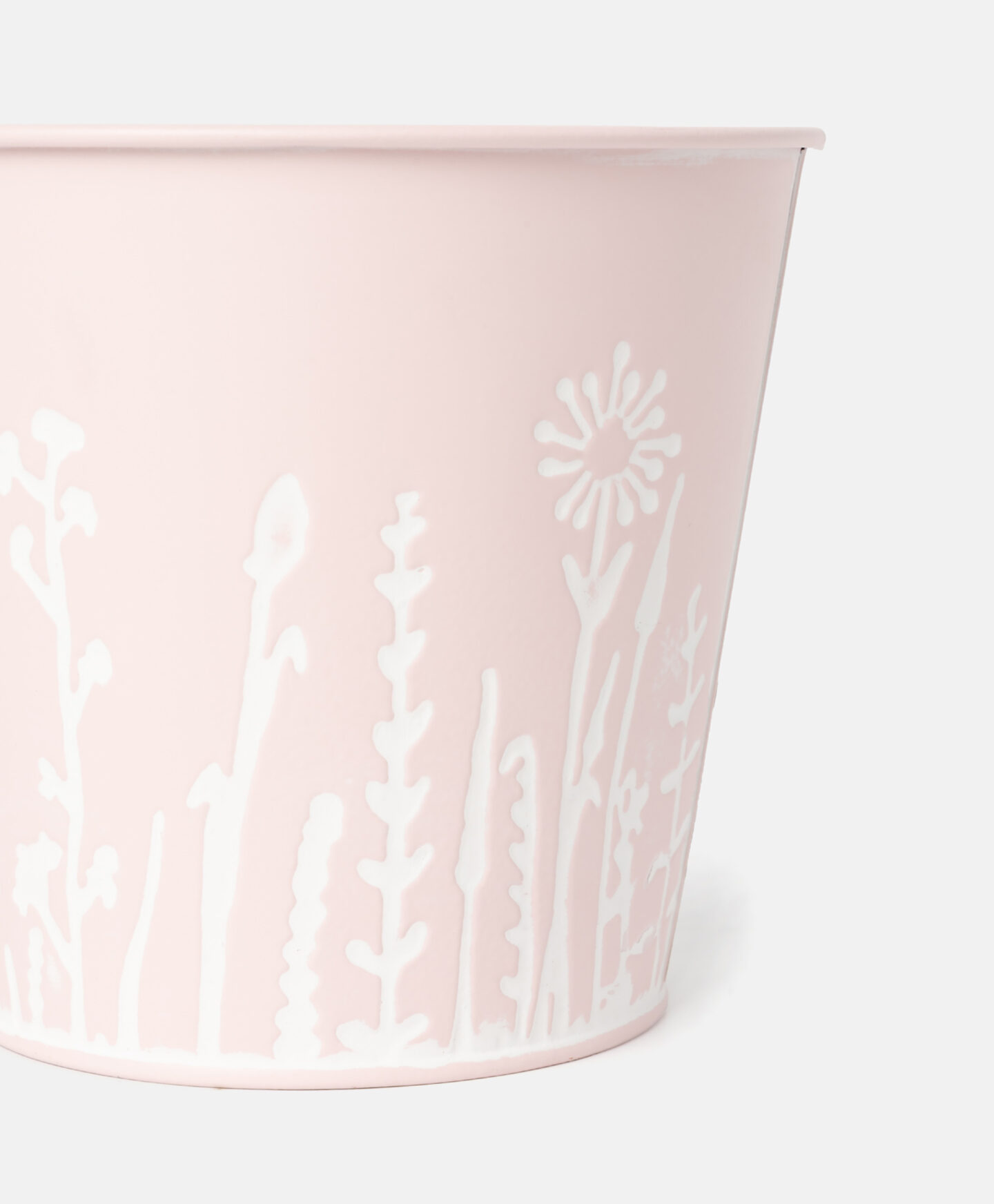 Rožinis metalinis vazonas su raštu yra lengvas, tvirtas ir atsparus oro sąlygoms. Pavasariški raštai ant sienelių įneš gaivos jūsų terasai ar balkonui. Puikiai tinka mažiems augalams, daržovėms ar gėlėms sodinti. Vazoną lengva valyti ir prižiūrėti – siekdami išlaikyti jo blizgesį ir gražią išvaizdą, tiesiog nuvalykite drėgna šluoste. Galima rinktis iš keleto variantų.