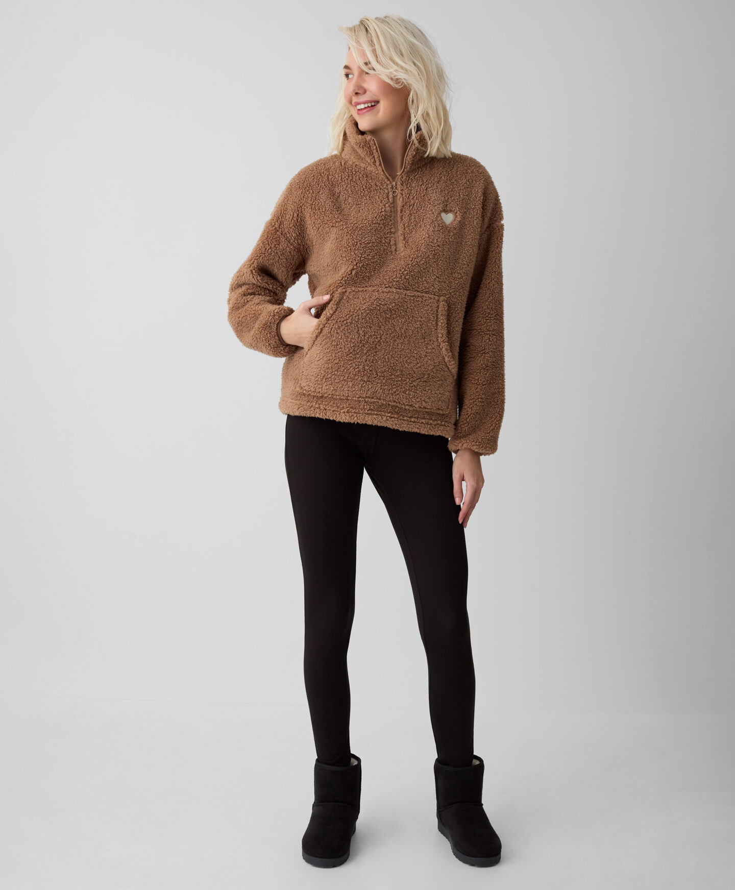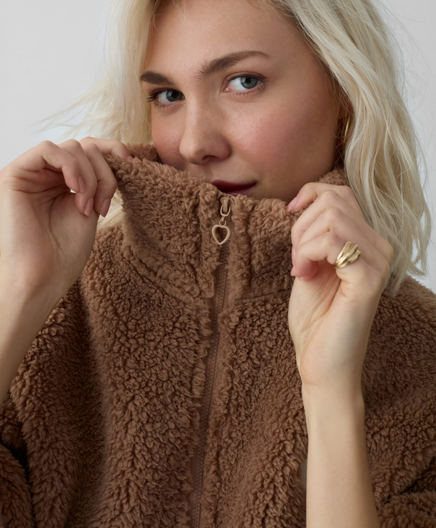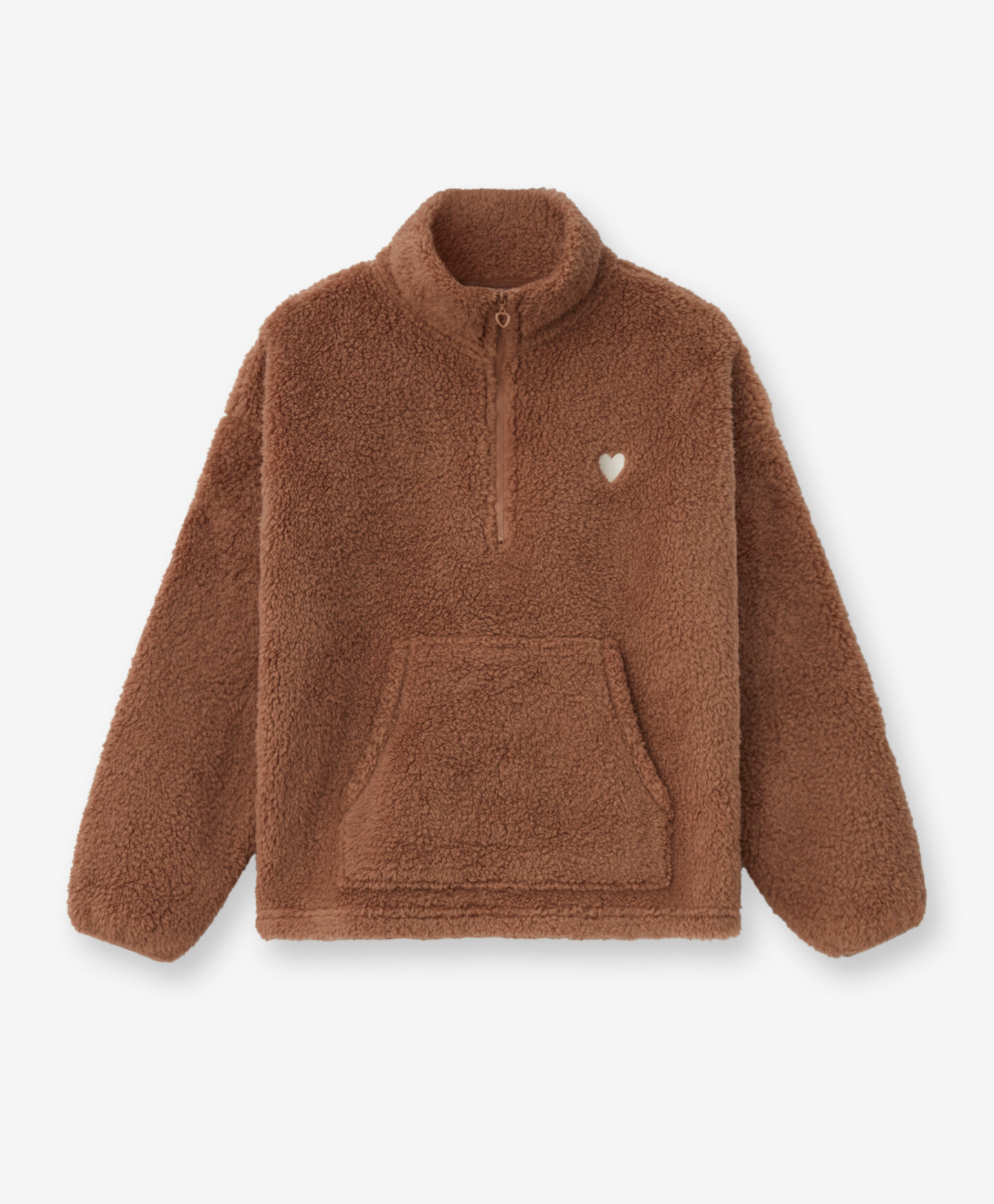 Rudas flisinis džemperis yra stilingas, šiltas ir malonus liesti. Užsegimas ties kaklu suteikia charakterio ir palengvina apsirengimą, o kengūros tipo kišenė leidžia sušildyti rankas vėsiomis dienomis. Gražus rudos spalvos atspalvis puikiai dera prie rudens ir žiemos atmosferos. Flisinis džemperis idealiai tinka žiemos vakarams namuose arba ilgam pasivaikščiojimui, dėvimas po striuke.