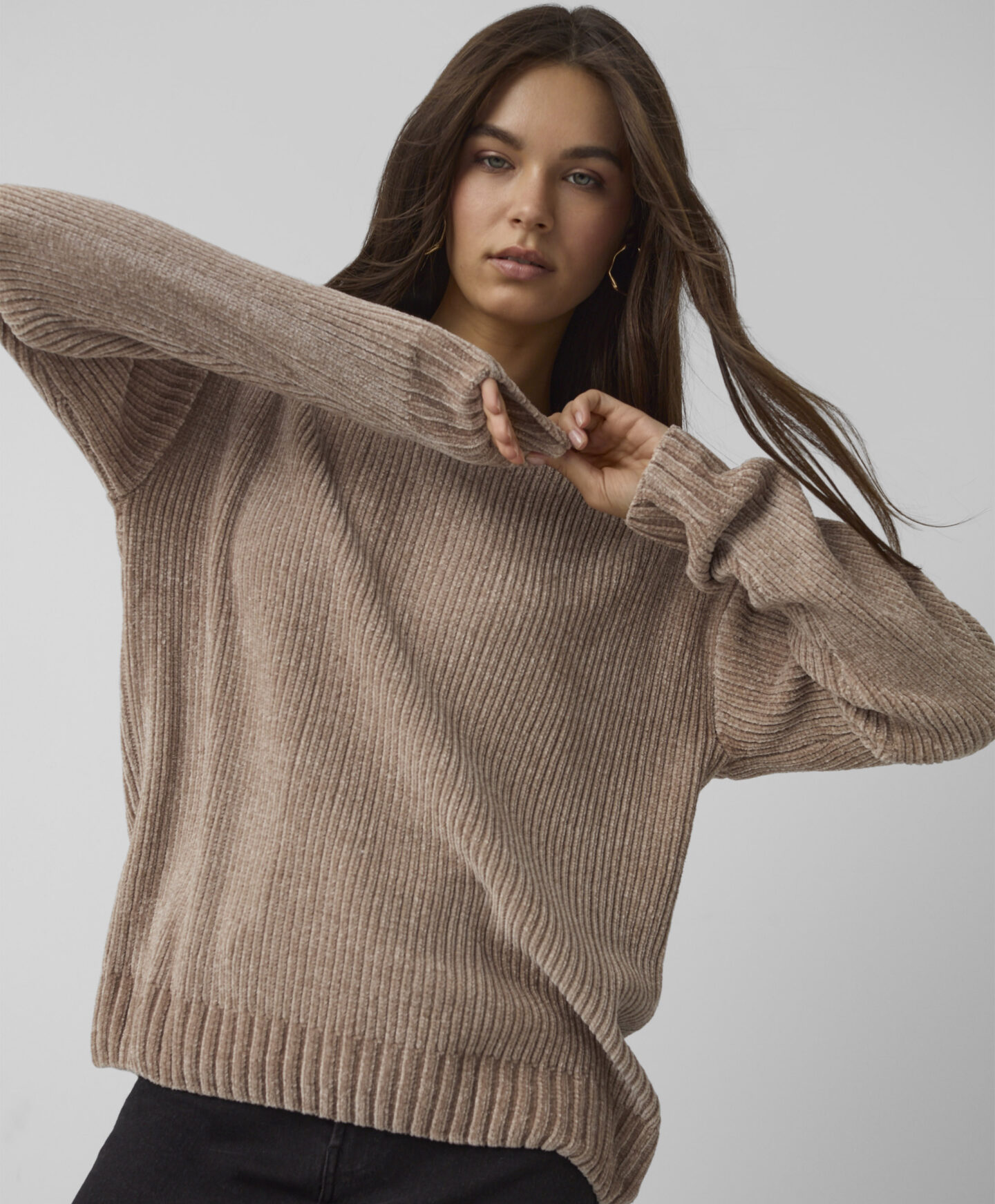Rudas šenilinis megztinis puikiai dera ir prie laisvalaikio, ir prie elegantiškesnės aprangos. Minkštas liesti, todėl užtikrina maksimalų komfortą. Galima rinktis iš dviejų spalvų.