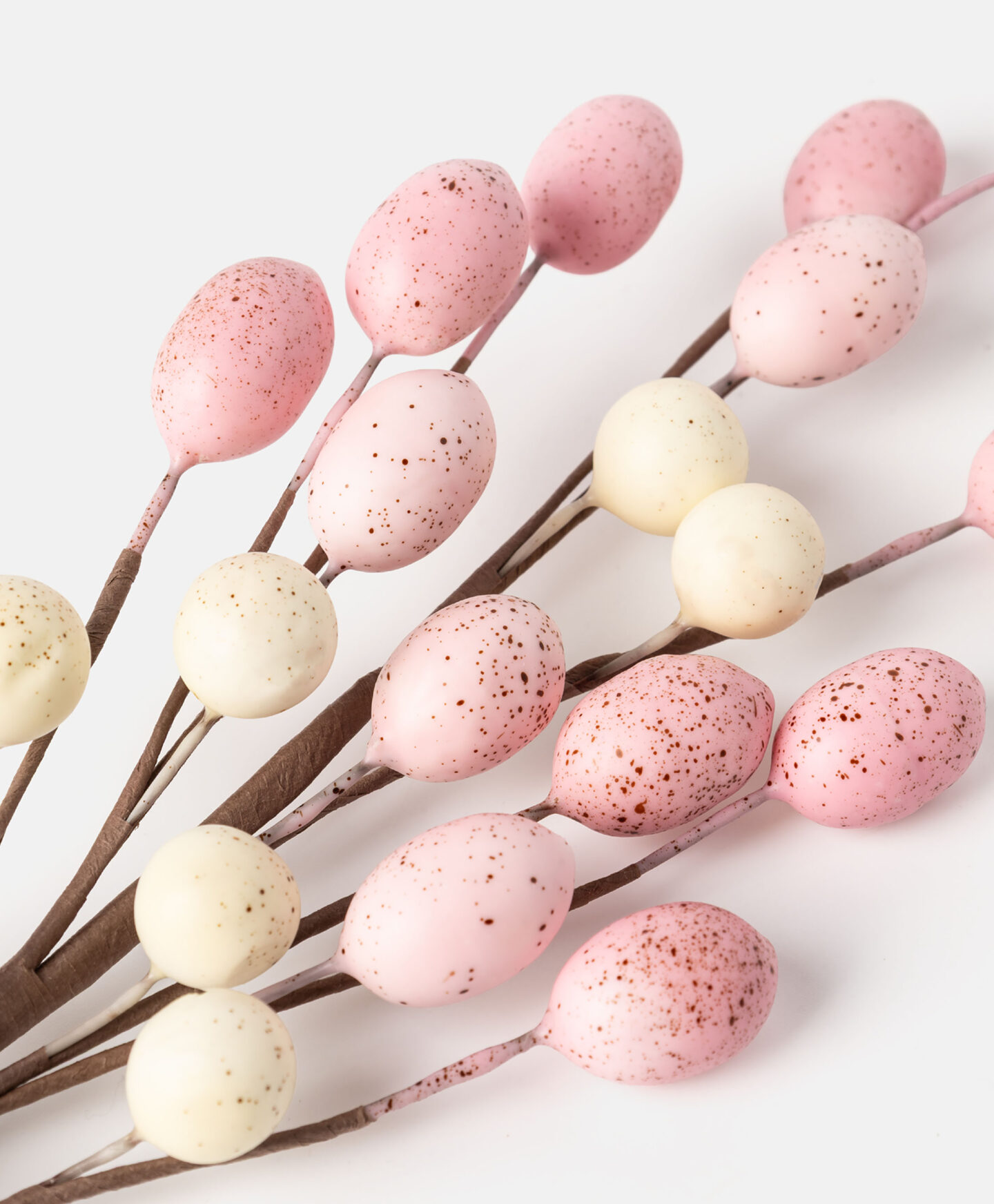 Šakelė su rožiniais margučiais sukurs pavasarišką atmosferą bet kuriame interjere. Ji puikiai tinka ir kaip krepšelio puošybos elementas, ir kaip šventinio stalo puošmena. Įdėkite jį į vazoną arba neįpareigojančiai išdėliokite ant staltiesės, kad džiugintų akį per pusryčius.