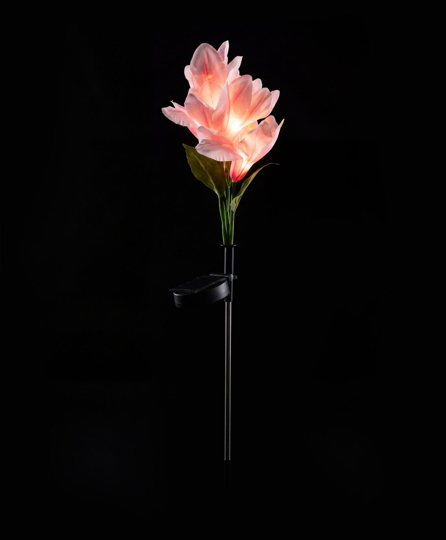 Saulės energija maitinama lempa su gėle – elegantiška ir tvirta dekoracija jūsų namams. Dirbtinė ryškios spalvos gėlė kiekvieną vakarą apšviečiama LED šviesa, sukuriant magišką atmosferą sode, terasoje ar balkone. Maitinama saulės energija per įmontuotą saulės panelę, todėl veikia be kabelių ir baterijų. Lengva įkišti į žemę, todėl lempą galima greitai įrengti pasirinktoje sodo vietoje, gėlių lysvėje ar vazonėlyje. Lempa automatiškai įsijungia sutemus ir išsijungia auštant, tad naktinis apšvietimas nereikalauja priežiūros.