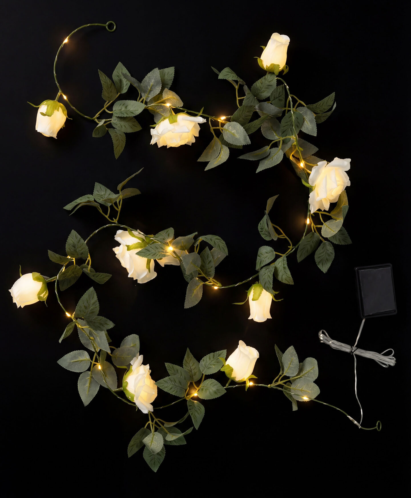 Saulės energija maitinamos rožių formos girliandos su 20 LED – romantiška dekoracija, suteiksianti magijos ir šilto švytėjimo bet kuriam sodui, balkonui ar terasai. Girliandą sudaro 20 LED rožių formos lempučių, kurios maitinamos saulės energija per įmontuotą saulės panelę. Kiekviena rožė pagaminta iš minkštos medžiagos, kuri švelniai sklaido šviesą. Girlianda automatiškai įsijungia sutemus ir išsijungia auštant, be papildomos priežiūros.