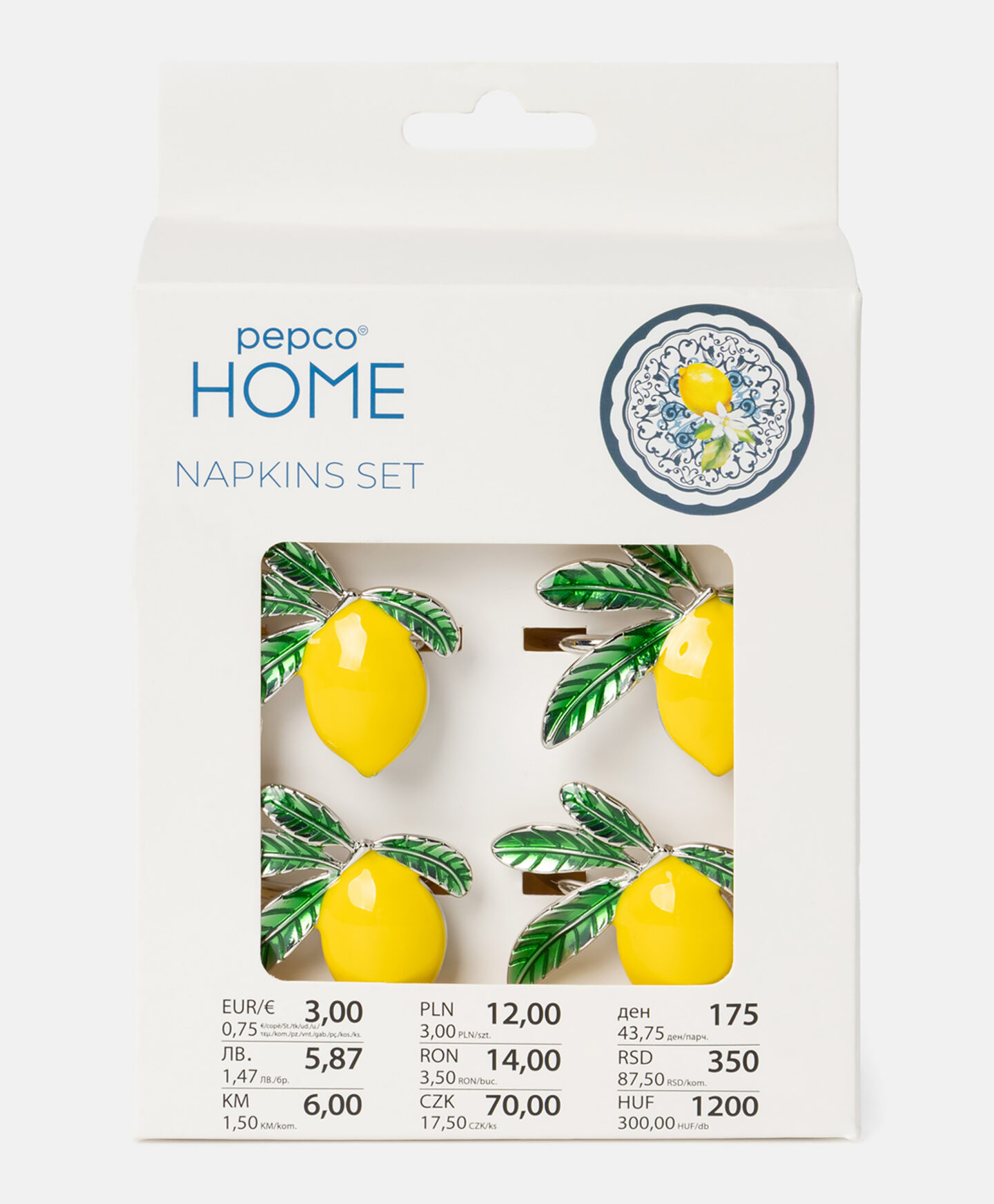 Šis servetėlių žiedų su citrinų raštu rinkinys, 4 vnt., pakeis bet kurį stalo serviravimą. Ryškios spalvos suteiks vasariško gaivumo tiek kasdieniams pietums, tiek piknikams. Žiedai yra tvirti ir lengvai valomi.