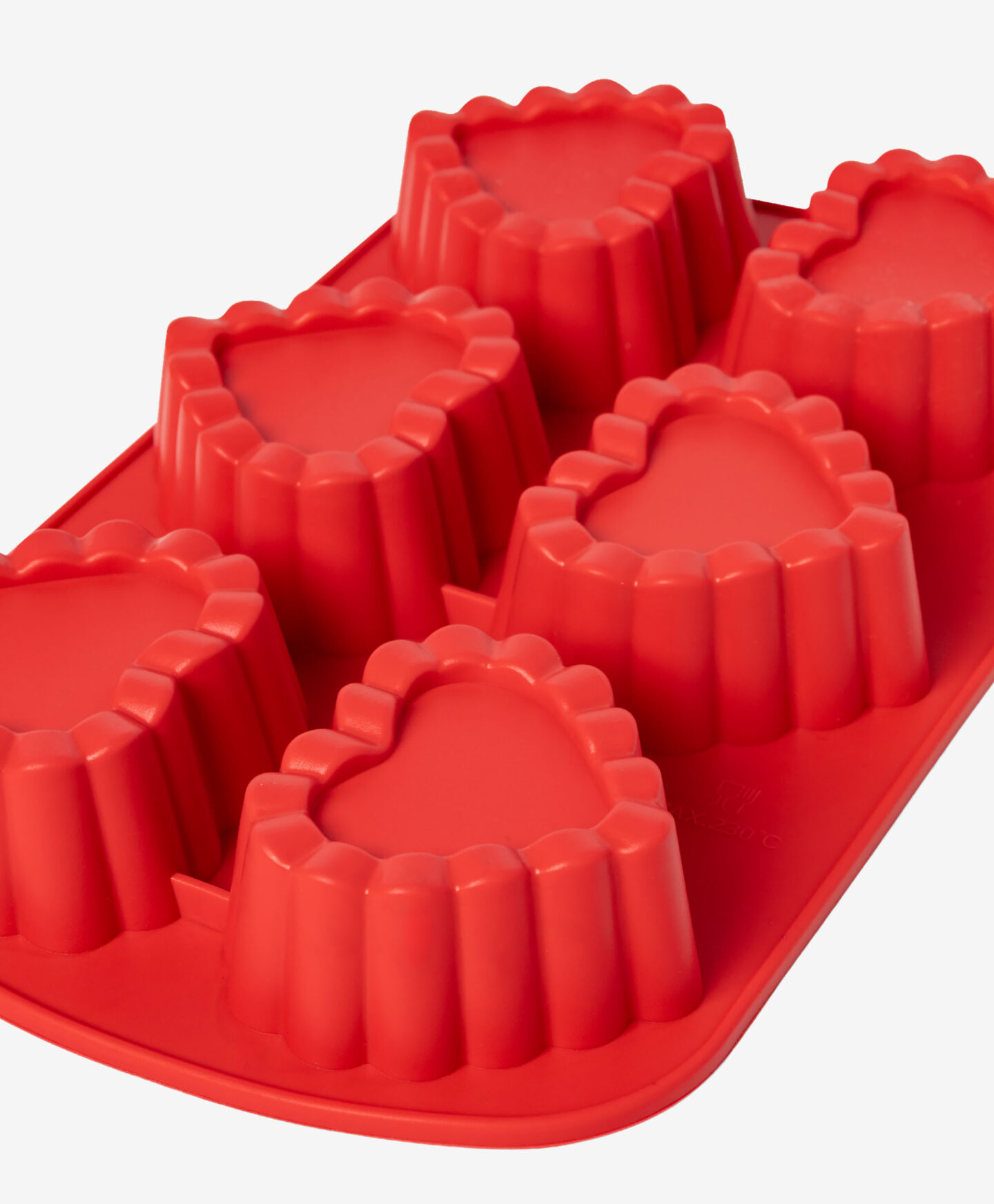 Silikoninėje kepimo formoje vienu metu galima kepti 6 širdelės formos keksiukus, tačiau ji puikiai tinka ir kitiems desertams ruošti. Idealiai tinka Valentino dienai ir kasdieniam naudojimui. Lankstų silikoną lengva valyti, o kepinius lengva išimti iš formos.