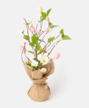 Ši stalo dekoracija su rožinėmis gėlėmis džiuto maišelyje papuoš jūsų erdvę! Subtilus žavesys, natūralios spalvos ir detalės sukuria jaukią atmosferą prie bet kurio stalo. Ją taip pat galite padėti ant virtuvės stalviršio, komodos, palangės ar židinio. Galima rinktis iš dviejų dizainų.