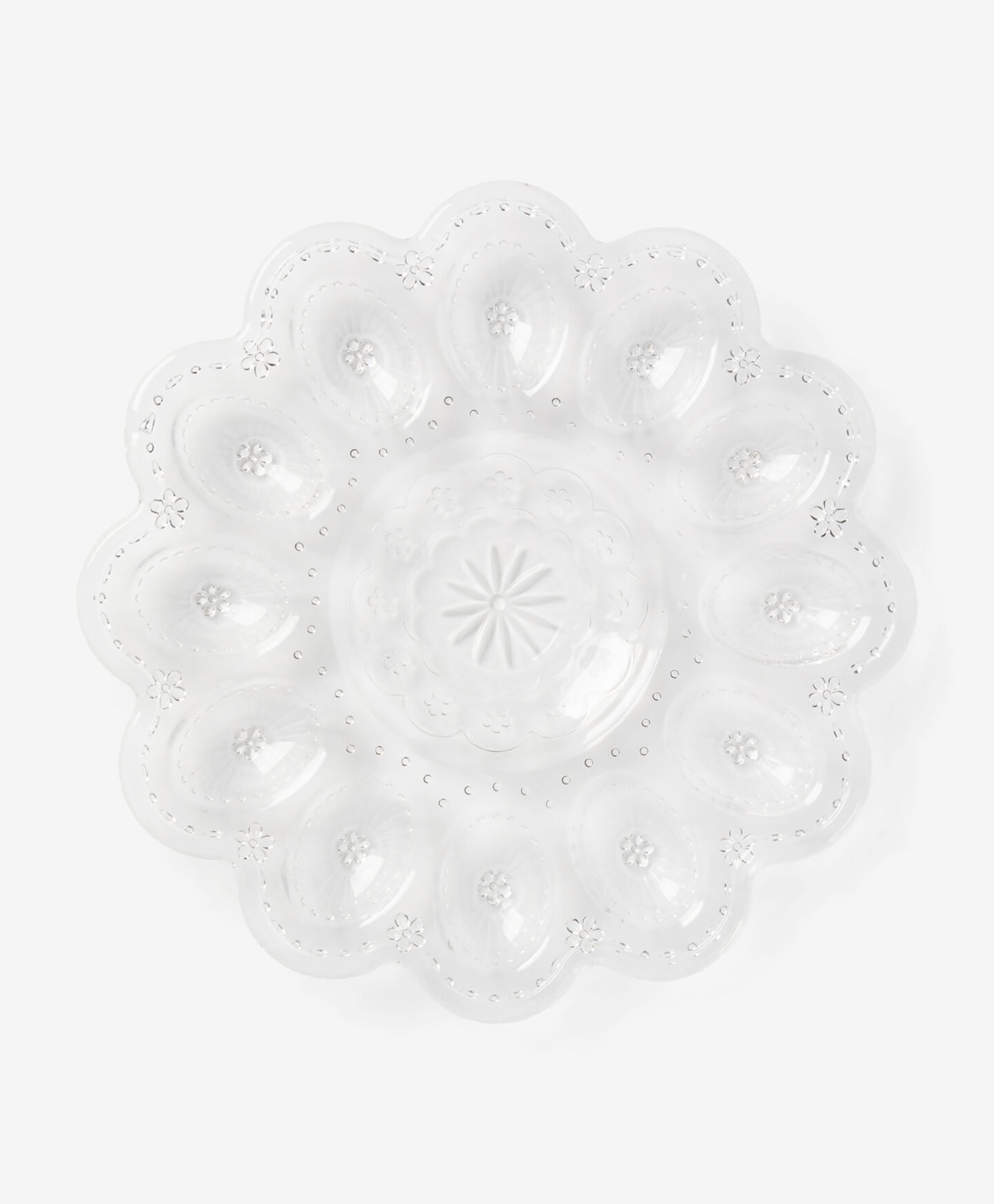 Stiklinis kiaušinių padėklas puikiai tinka šventiniams pusryčiams. Tai elegantiškas būdas pateikti įdarytus kiaušinius, kietai arba minkštai virtus kiaušinius. Jis taip pat taps puikia stalo dekoracija arba rankomis dekoruotų velykinių kiaušinių eksponavimo vieta.