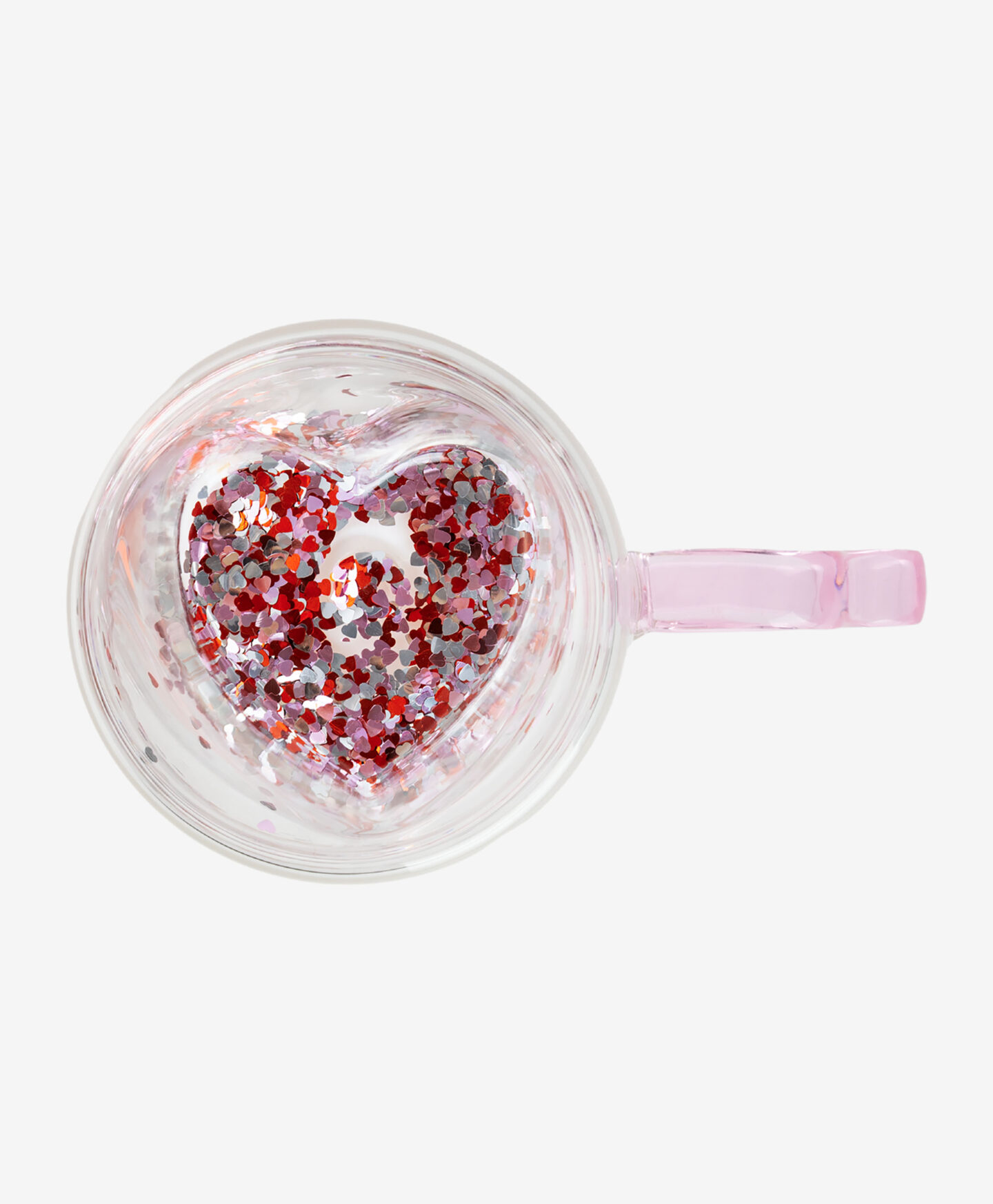 Iš borosilikatinio stiklo pagamintas puodelis su širdelės formos ąsele turi dvigubas sieneles, pripildytas konfeti blizgučiais. Jis puikiai tinka mėgautis rytine kava ar arbata, o taip pat yra unikali dovana mylimam žmogui. Pagamintas iš patvaraus stiklo, atsparus kasdieniam naudojimui ir lengvai prižiūrimas.