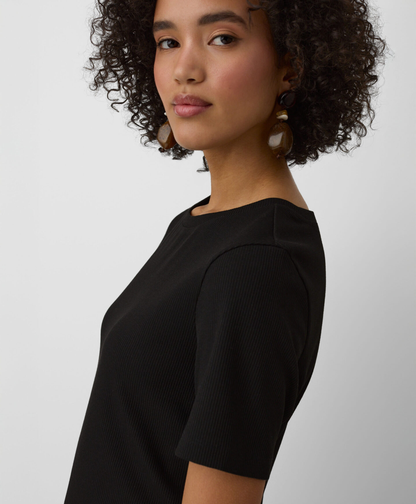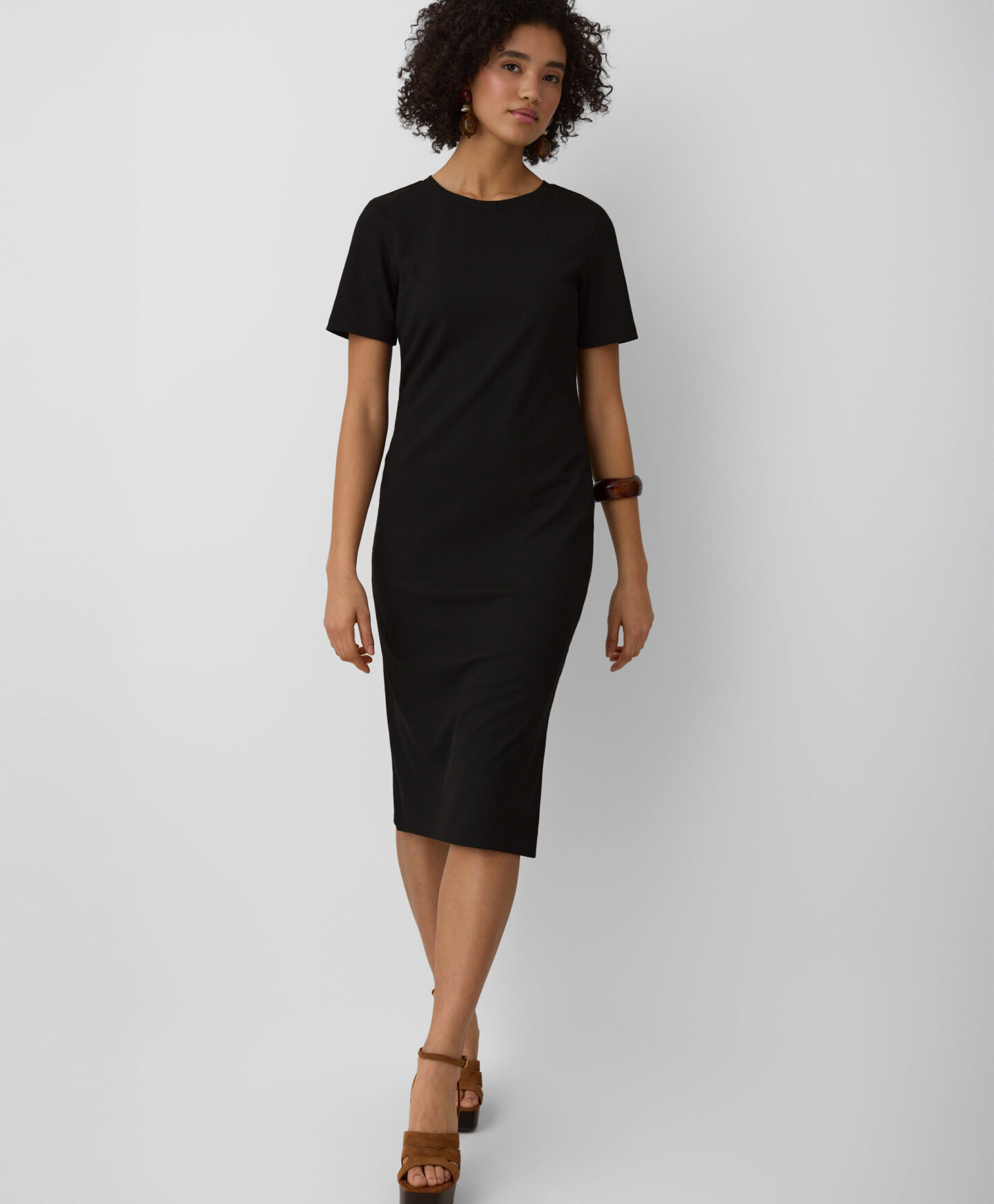 Ši dryžuota suknelė yra itin universali. Laiko patikrinta juoda spalva vizualiai lieknina siluetą, klasikinis kirpimas užtikrina gražų prigludimą, minkšta medžiaga suteikia neprilygstamą komfortą. Ši suknelė puikiai tinka tiek kasdienai, tiek ypatingoms progoms.