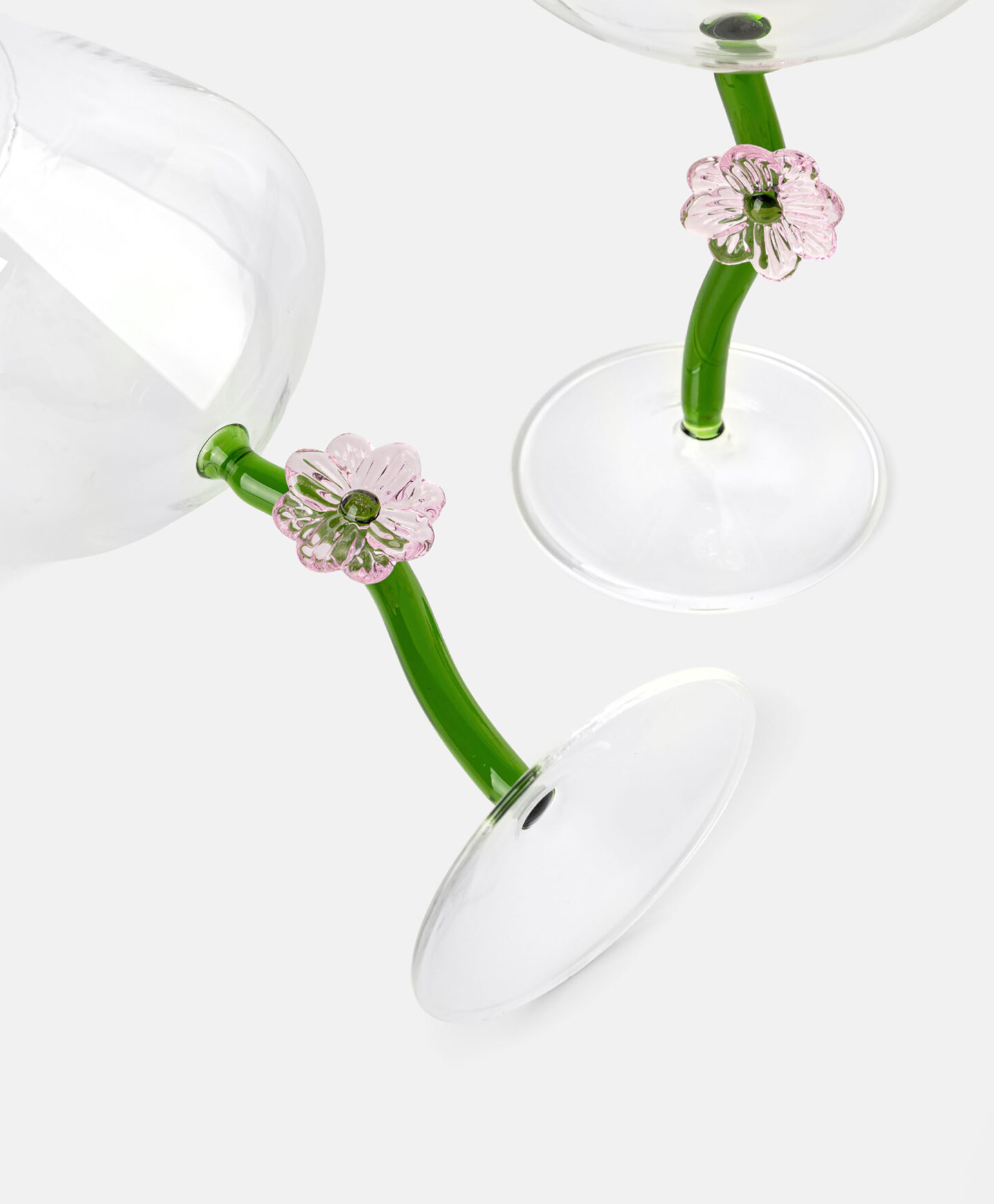 Taurė su 3D gėle, 2 vnt., puikiai tinka tiems, kurie ieško unikalių stalo indų. Taurė puikiai tinka ir ypatingoms progoms, ir kasdienai. Netaisyklingos formos žalia kojelė, papuošta rožine gėle, traukia dėmesį ir tikrai pradžiugins jūsų svečius. Puikiai tinka vandeniui, kokteiliams ar glotnučiams.