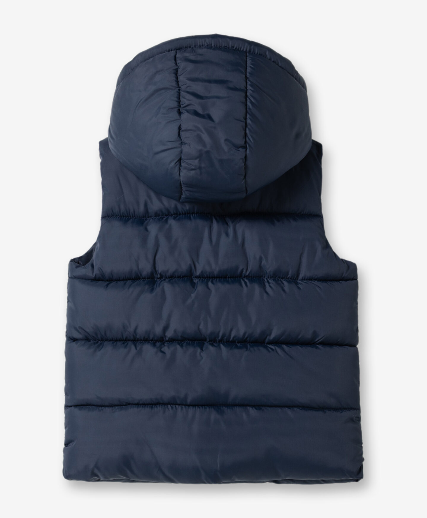 Vaikiška liemenė su gobtuvu puikiai papildys garderobą pereinamuoju metų laiku. Ji puikiai atrodo su džemperiu, megztiniu ar marškinėliais ilgomis rankovėmis. Dėl erdvių kišenių rankos nesušals vėsiomis dienomis, o gobtuvas apsaugos jūsų vaiką nuo vėjo. Liemenė yra lengva, šilta ir labai universali. Klasikinė tamsiai mėlyna spalva suteiks charakterio bet kokiai aprangai.