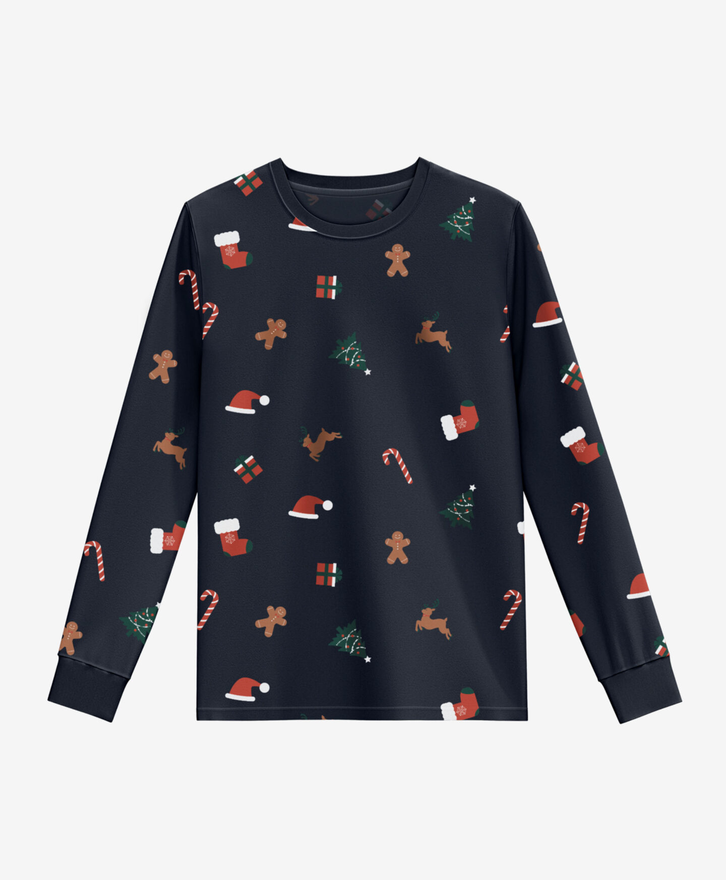 Šios vaikiškos pižamos su kalėdiniu raštu patiks kiekvienam miegaliui. Pagamintos iš minkštos, orui pralaidžios medvilnės, jos jaukiai palydės jūsų mažylį į sapnų karalystę. Komplektą sudaro marškinėliai ilgomis rankovėmis ir kelnės, todėl jis puikiai tinka vėsioms žiemos naktims. Šventinis raštas suteiks magijos ilgiems vakarams, jaukiai leidžiamiems namuose.