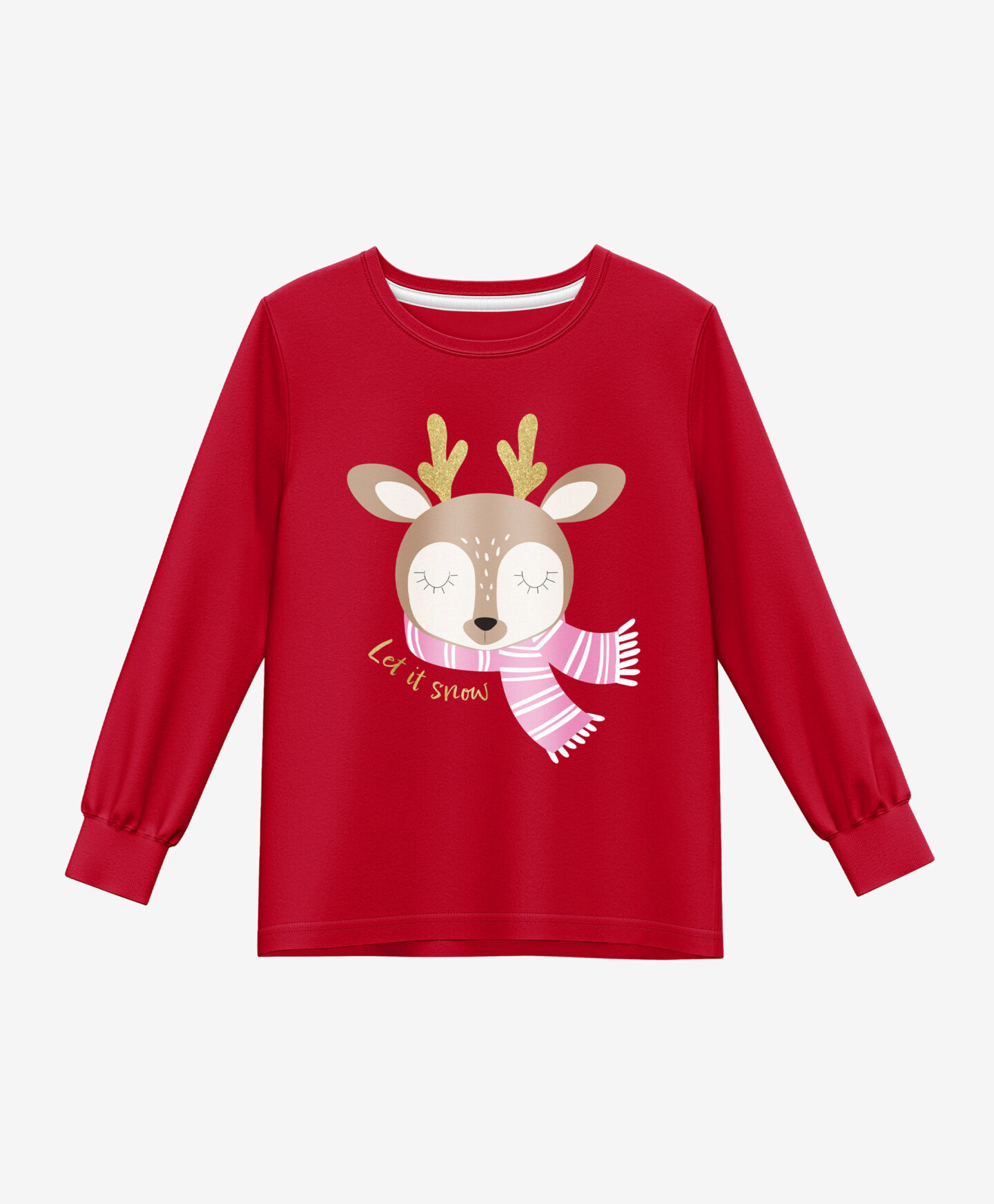Vaikiška pižama su elniais, pasiūta iš 100 % medvilnės, yra puikus pasirinkimas žiemos naktims. Komplektą sudaro marškinėliai ilgomis rankovėmis ir kelnės, kurie užtikrina patogumą ir šilumą. Minkšta medvilnė švelniai apgaubia vaiko odą, o kalėdinis raštas su elniu suteikia žavesio. Tai puiki pižama šeimos akimirkoms jaukiuose namuose.