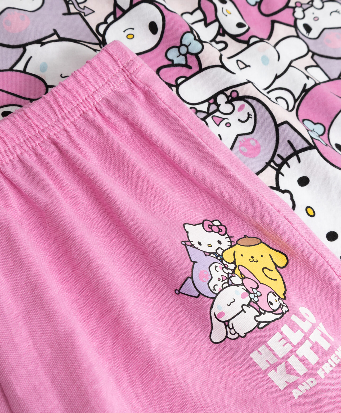 Vaikiška pižama su HELLO KITTY IR DRAUGAI motyvias, 100 % medvilnės. Rinkinį sudaro marškinėliai ir šortai, todėl jis puikiai tinka šiltesnėms naktims. Medžiaga švelniai apgaubia odą, klasikinis kirpimas užtikrina judėjimo laisvę. Galima rinktis iš įvairių dizainų.