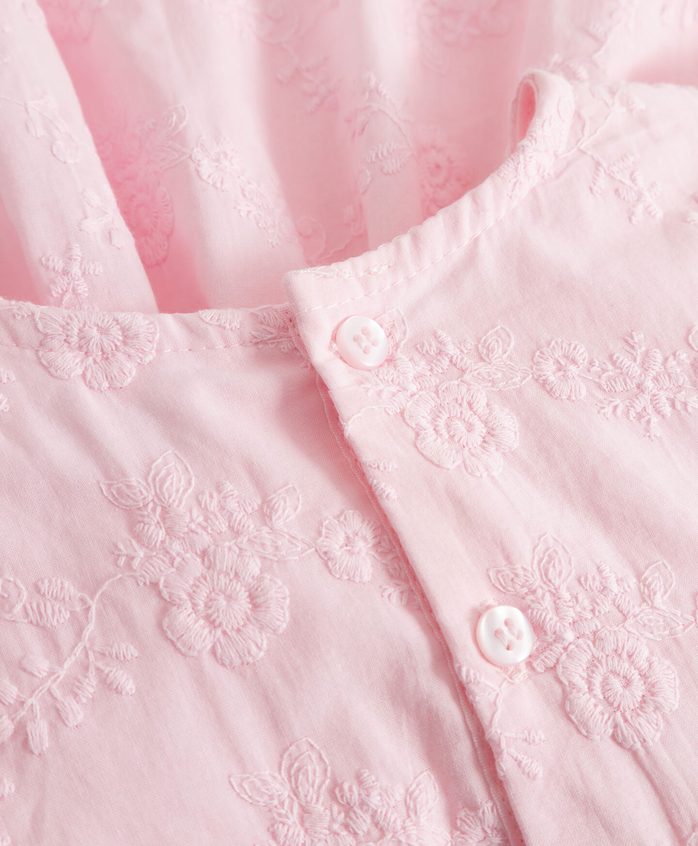 Ši vaikiška suknelė iš poplino – elegantiškas pasirinkimas ypatingomis progomis. Subtilus gėlių siuvinėjimas ir pūstos rankovės suteikia žavesio bei lengvumo. Medvilninis viršutinis poplino sluoksnis yra itin lengvas, tačiau kartu patvarus ir atsparus dėvėjimuisi. Platėjantis kirpimas užtikrina visišką judėjimo laisvę. Derinama su kardiganu, suknelė sukuria stilingą derinį.