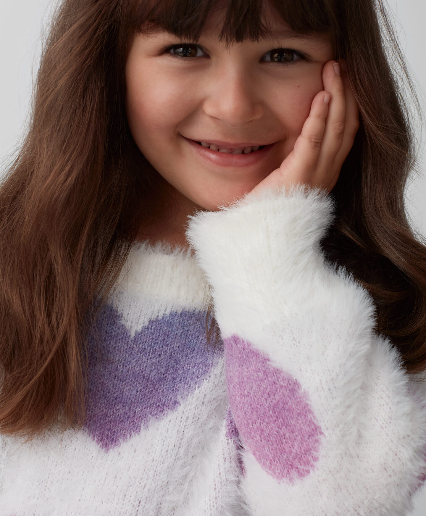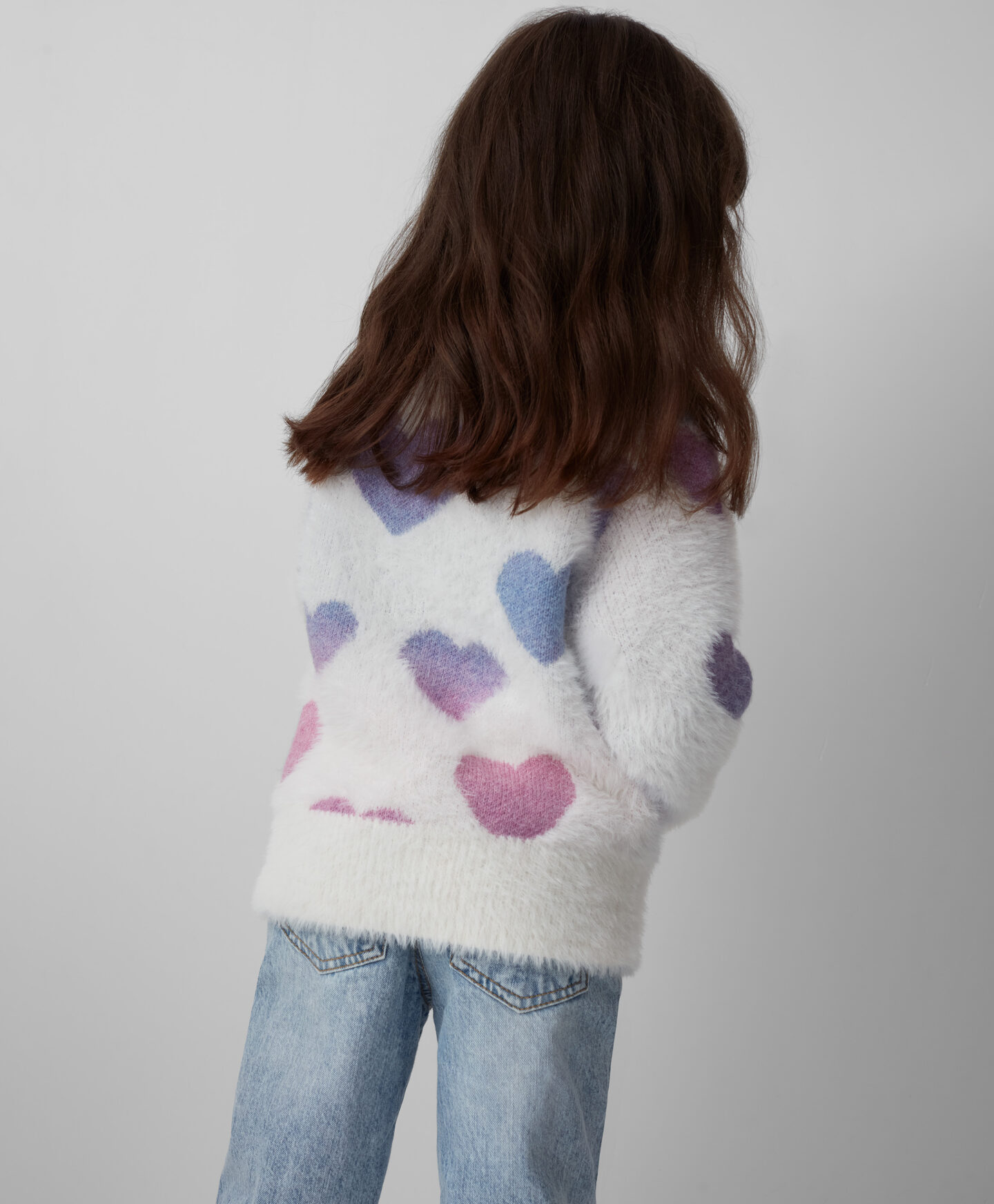 Vaikiškas megztinis su širdelių raštu puikiai tinka mažiems komforto ir šilumos mėgėjams. Dėl žavingo dizaino jis yra minkštas ir malonus liesti. Idealiai tinka rudens ir žiemos vėsai, todėl tai bus puikus pasirinkimas darželiui, mokyklai ar laisvalaikiui. Jis puikiai dera su džinsais ir tamprėmis.