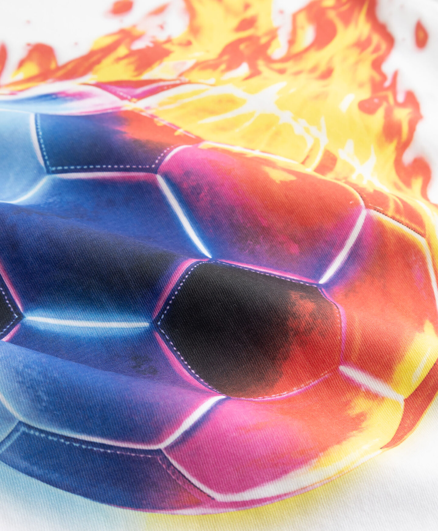 Vaikiški marškinėliai su futbolo kamuolio motyvais, 100 % medvilnės, su trumpomis rankovėmis ir dinamiška spauda priekyje. Jie puikiai tinka kartu su džemperiu arba dėvėti atskirai šiltesnėmis dienomis. Orui laidi medžiaga maloni jautriai vaiko odai ir suteikia visišką dėvėjimo komfortą. Jie puikiai tinka ir prie džinsų, ir prie sportinių kelnių.