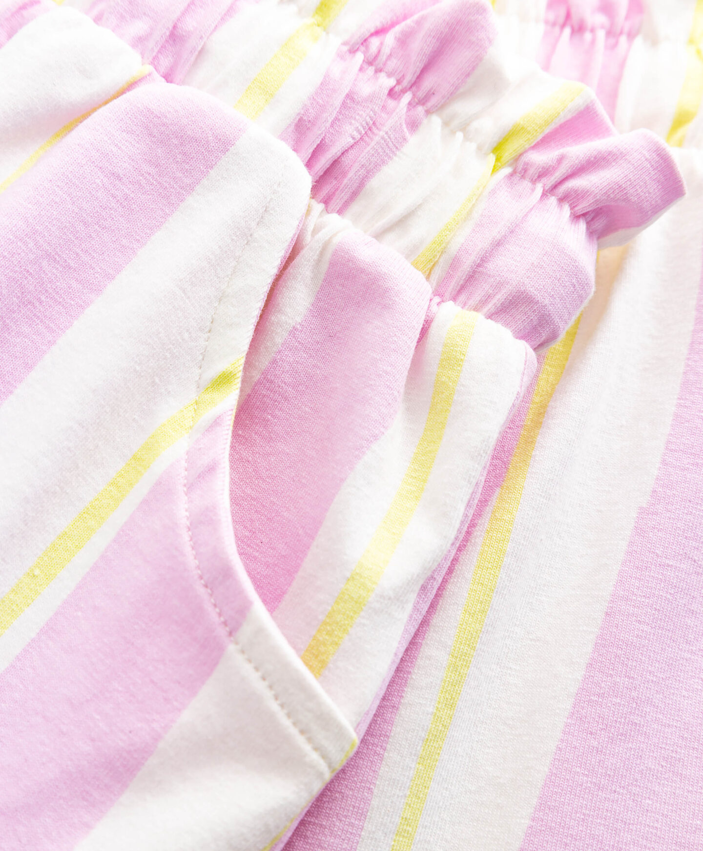 Šie vaikiški šortai su rožiniais ir baltais dryžiais – puikus pasirinkimas šiltomis dienomis. Medžiaga yra neįtikėtinai švelni, todėl oda gali kvėpuoti ir nesudirgsta net aktyviausios veiklos metu. Elastingas juosmuo užtikrina puikų prigludimą.